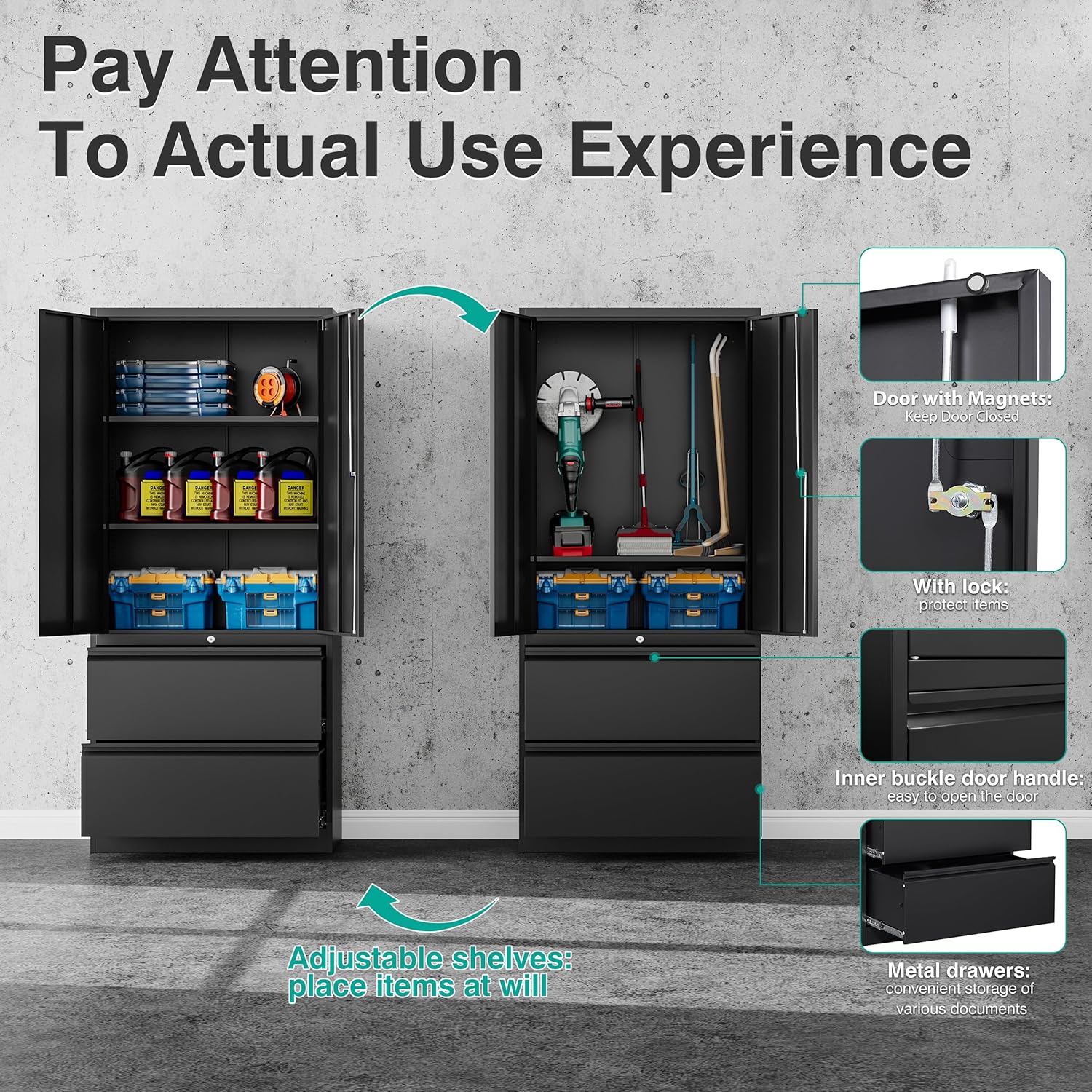 • 【Lockable Storage Cabinets】Our file cabinet come with locks and 2 adjustable shelf for a great fit and convenience. high end unlocks to protect valuables including keys. Whatever your storage needs, you can create a unique storage space that suits them