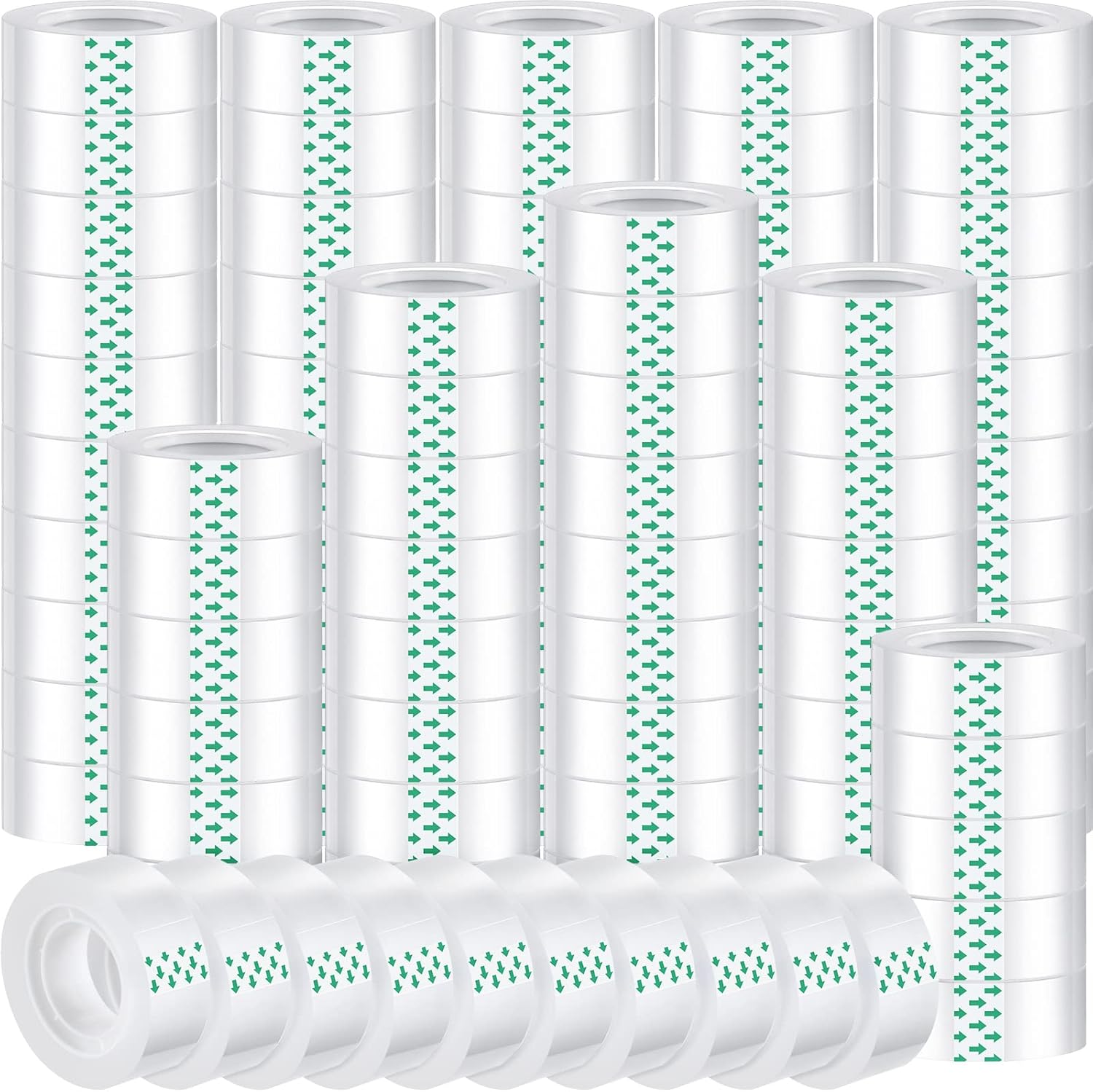 Pasimy 96 Rolls Clear Tape Bulk Strong Sticky Transparent Tape Refills for Dispenser, Office, Home, School, Wall, Carpet, 3/4 x 1000 Inches(Green)
