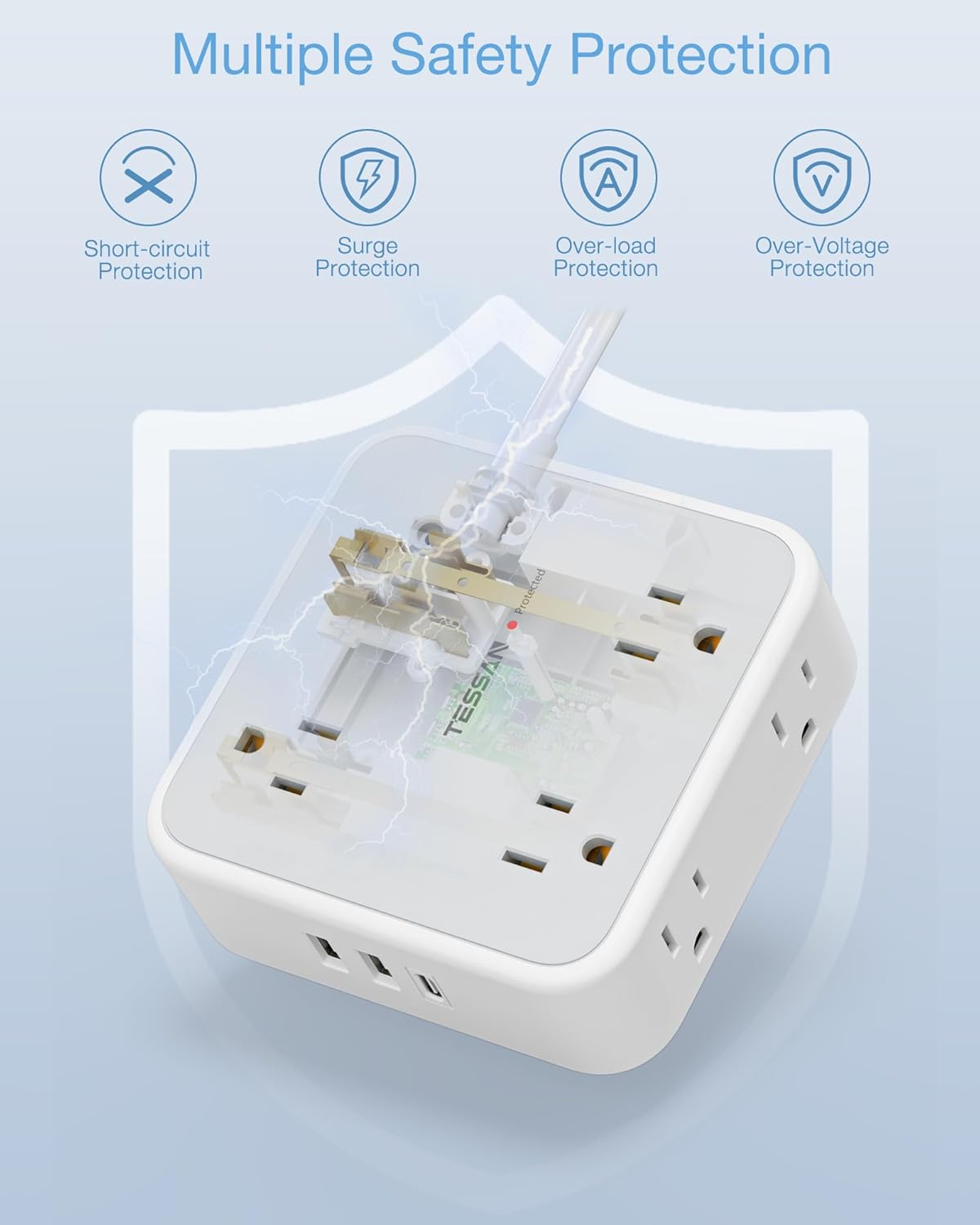 • Special Feature : On And Off Switch, Surge Protection, Usb Slot, Wide Spaced Outlet