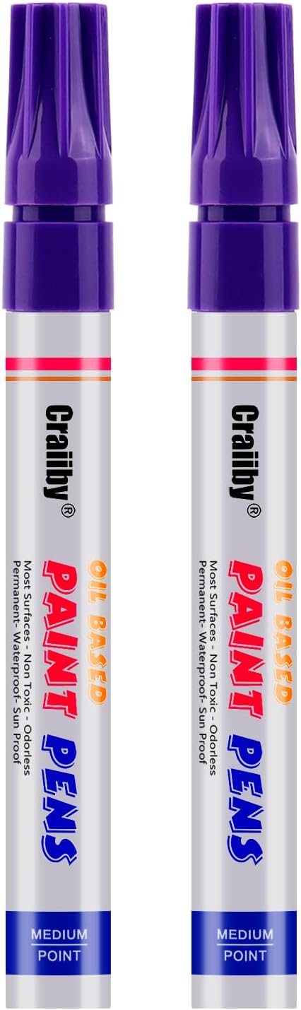 Purple Paint Markers, 2 Pack Oil-Based Waterproof Quick Dry Permanent Paint Pen Set for Rocks Painting, Wood, Fabric, Plastic, Canvas, Glass, Mugs, Metal, Tire, Stone, DIY Craft
