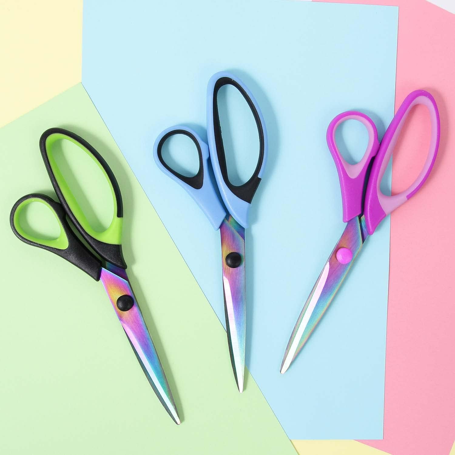 • MULTIPLE COLOR: You will get 8.5 inch titanium craft scissors set of 3-pack. Different colored scissors can be used in different places