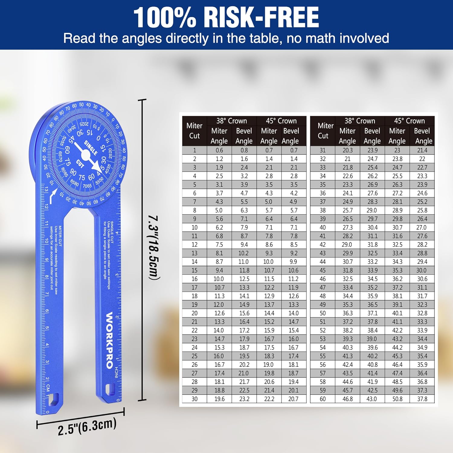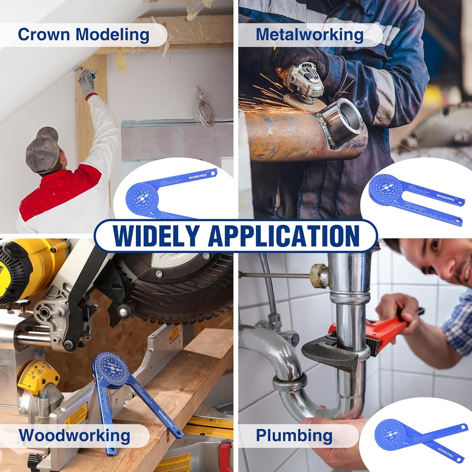 • Wide Application: Whether you are a professional or not, WORKPRO Miter Saw Protractor is excellent for you. It is suitable for crown molding, miter cuts, carpentry, plumbing, metalworking, DIY projects and more