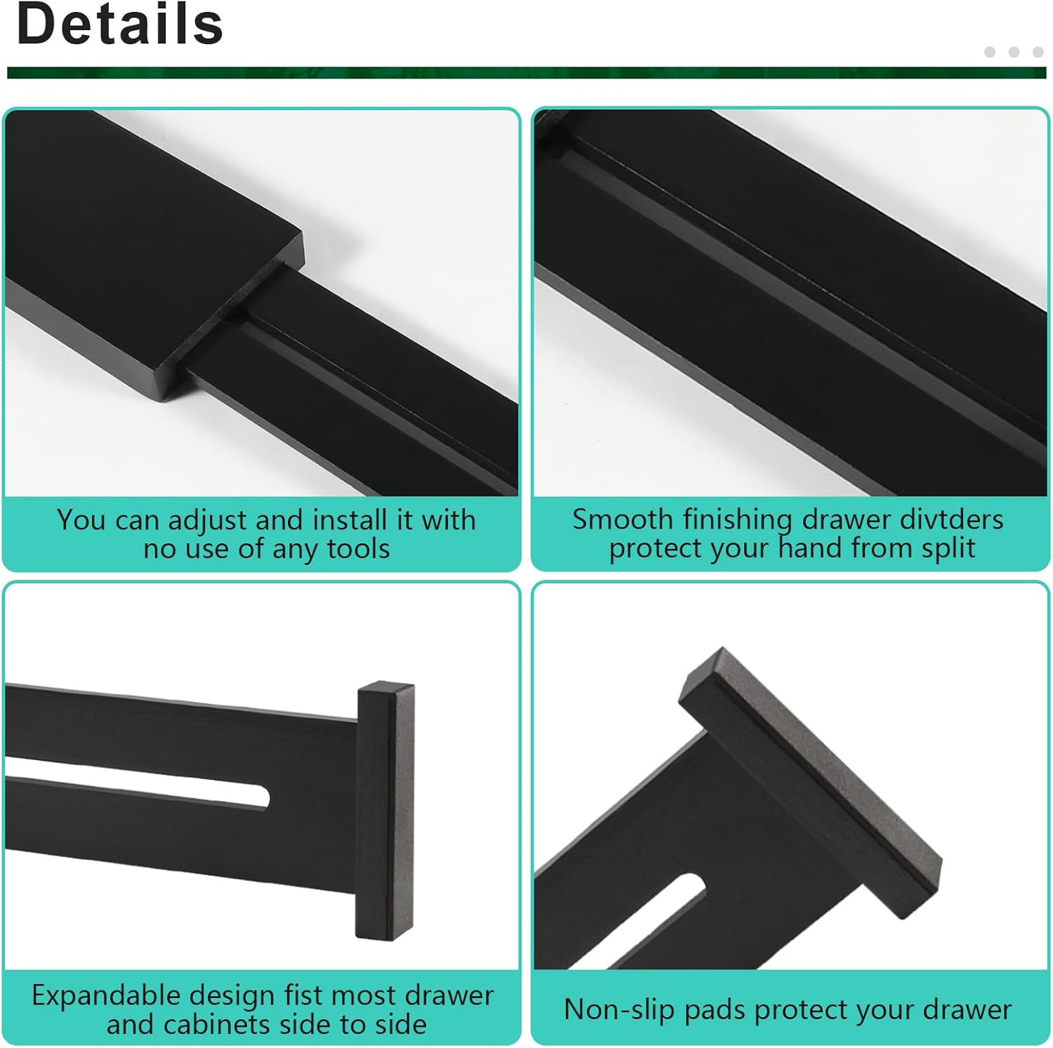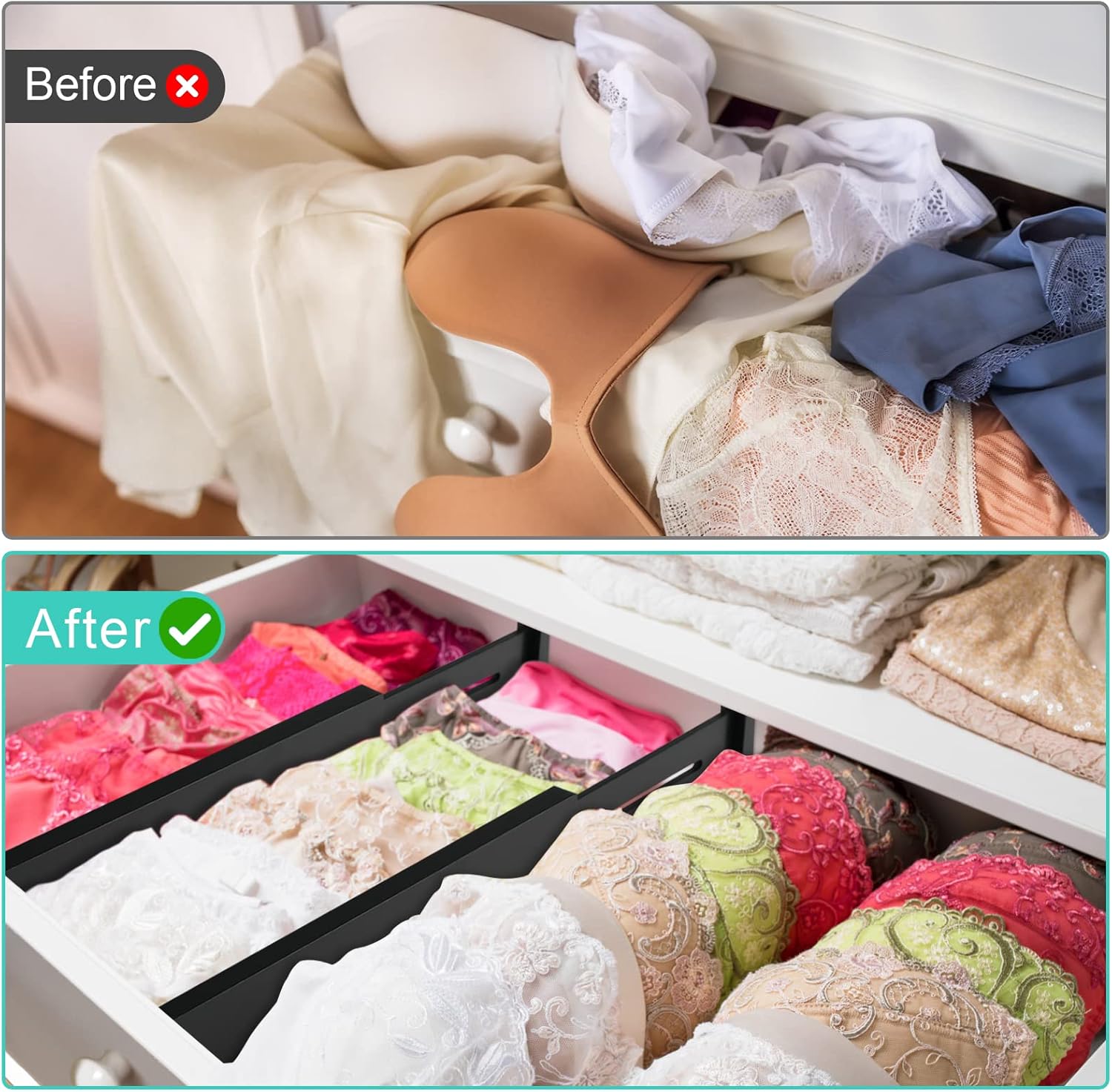 • Adjustable Drawer Dividers: Adjustable drawer dividers range from 11.8-17 inches in length; fits easily in most drawers to keep your belongings organized and easy to access