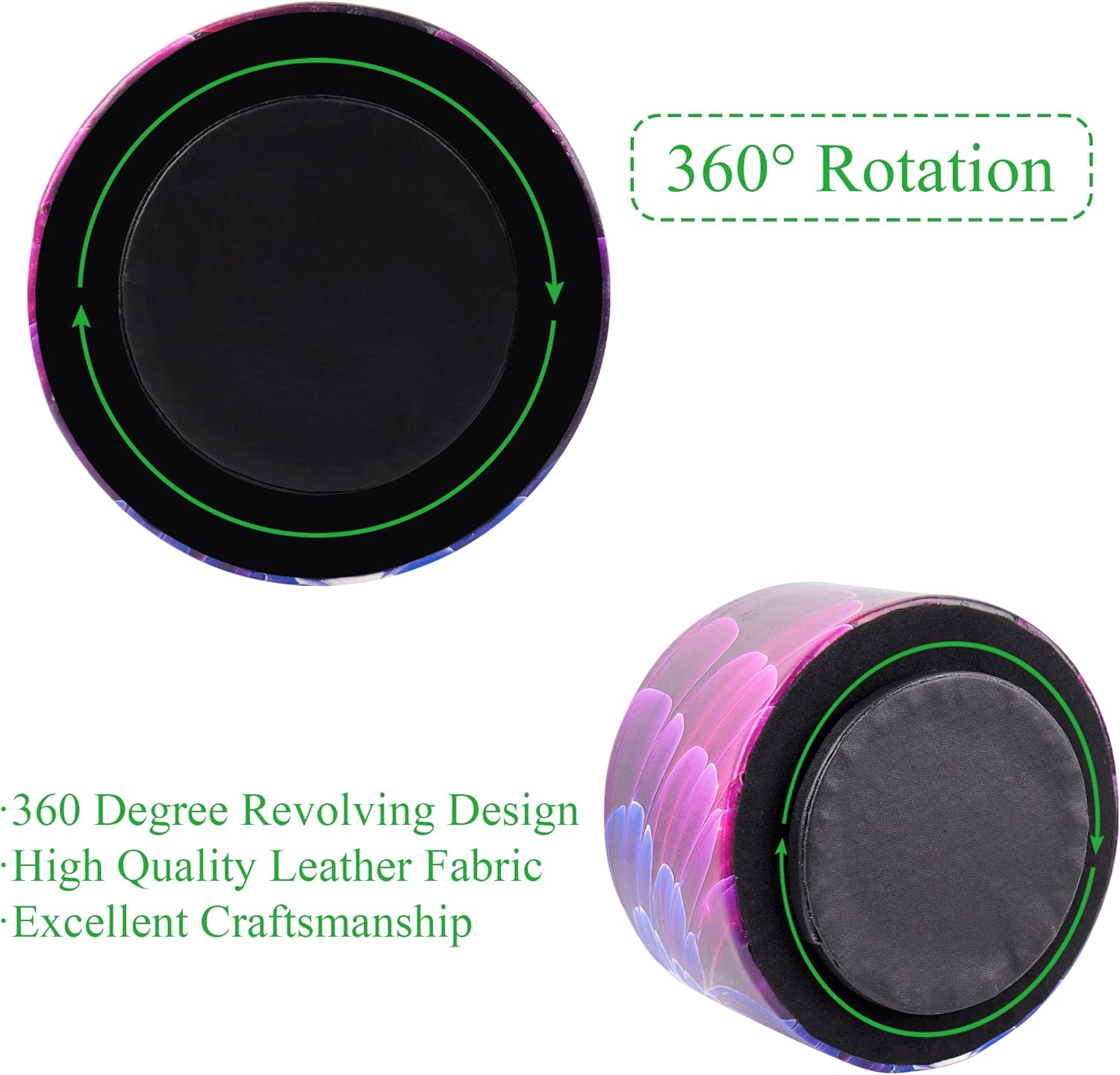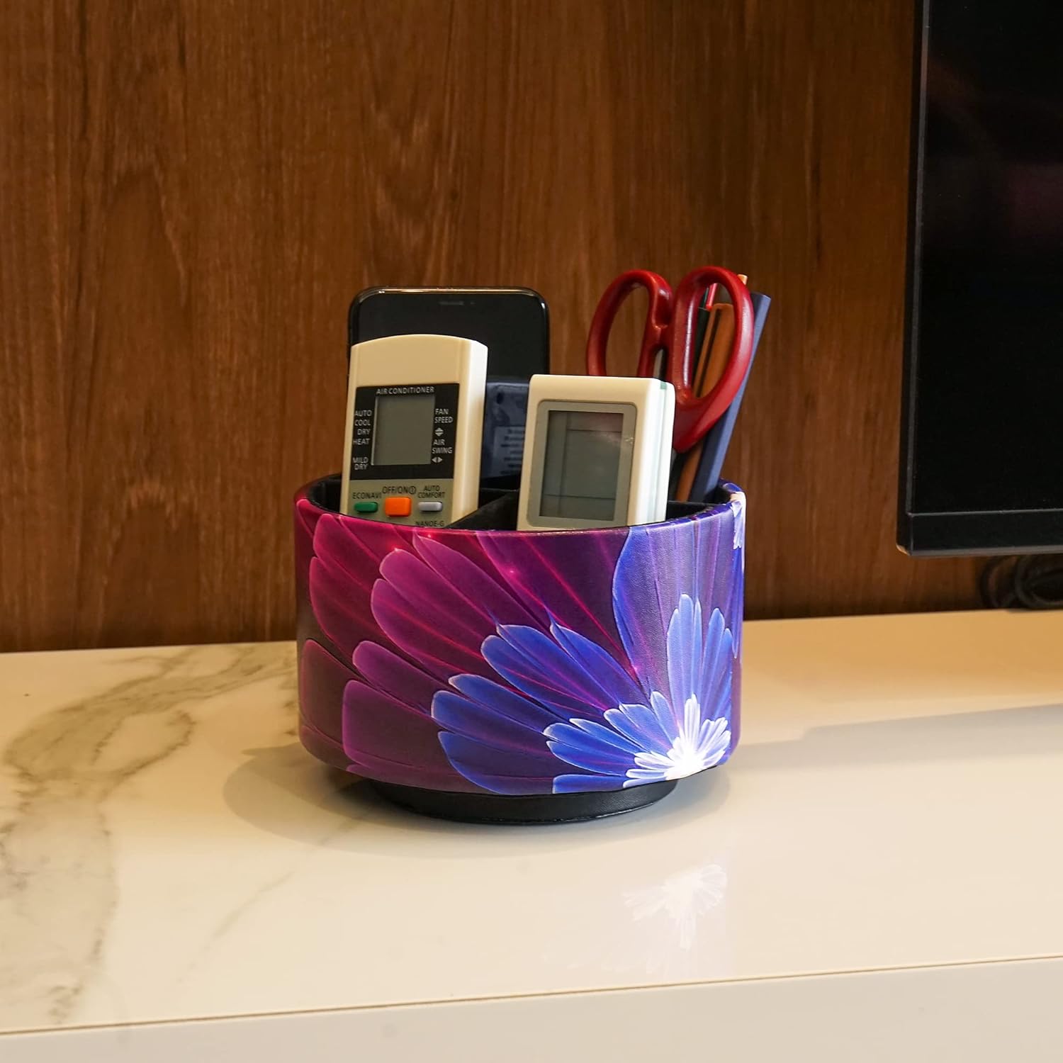 lizimandu Round Leather Art Supply Organizer,Remote Control Holder,360 Degree Spinning,Multi-Functional Pencil Holder,4 Compartments Desktop Stationary Organizer(1-Blue Fractal Flower)