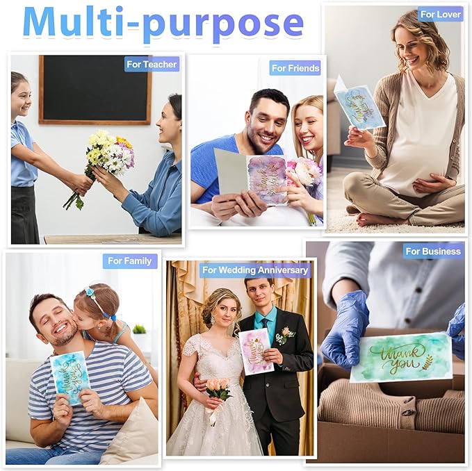 • Multiple usages: watercolor pattern thank you cards set is ideal for thanking engagements, baby and bridal showers, birthday parties, anniversaries, wedding guests, graduation, friendship day, Teacher's Day, Mother's Day, Father's Day, Thanksgiving and so on, also suitable for holding business gatherings, funerals and other occasions