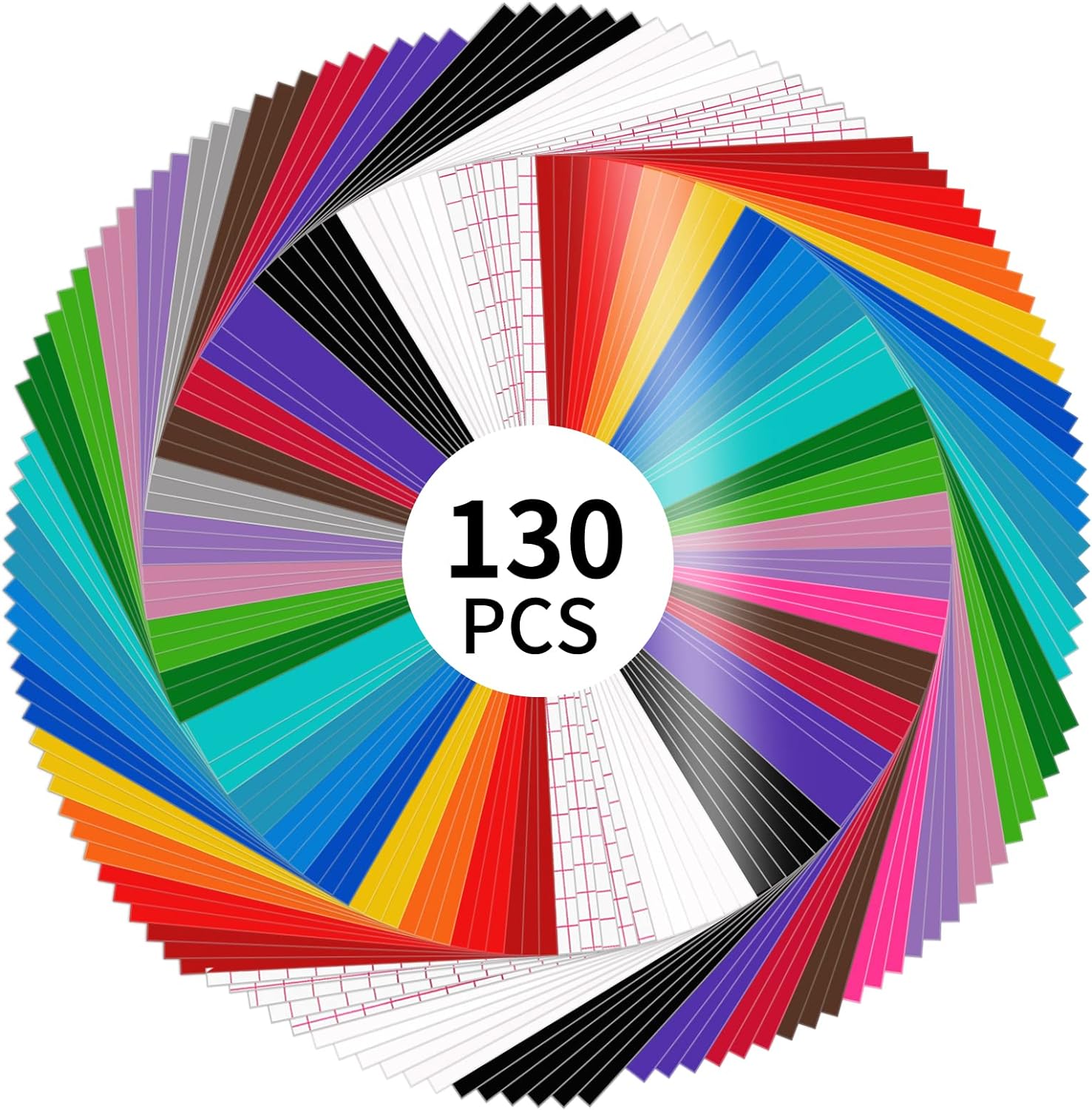 LYA Vinyl 130 Pack Permanent Vinyl - 12 "x12 Self Adhesive Vinyl Sheets,120 Sheets & 10 Transfer Tape Sheets for Cutting Machines and Decor Sticker