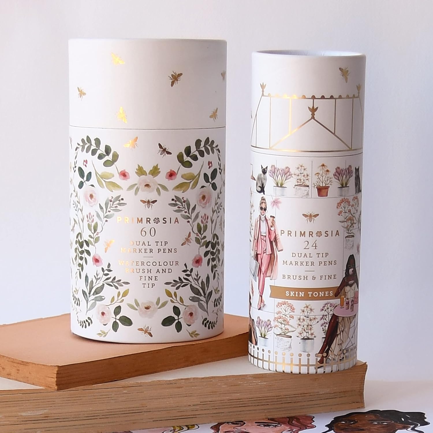 Primrosia Dual Tip Marker Pens and Skin Tones sets, Fineliner and Watercolor Brush Pens for Art Sketching Illustration Calligraphy Permanent Highlighter Bullet Journal Drawing Coloring