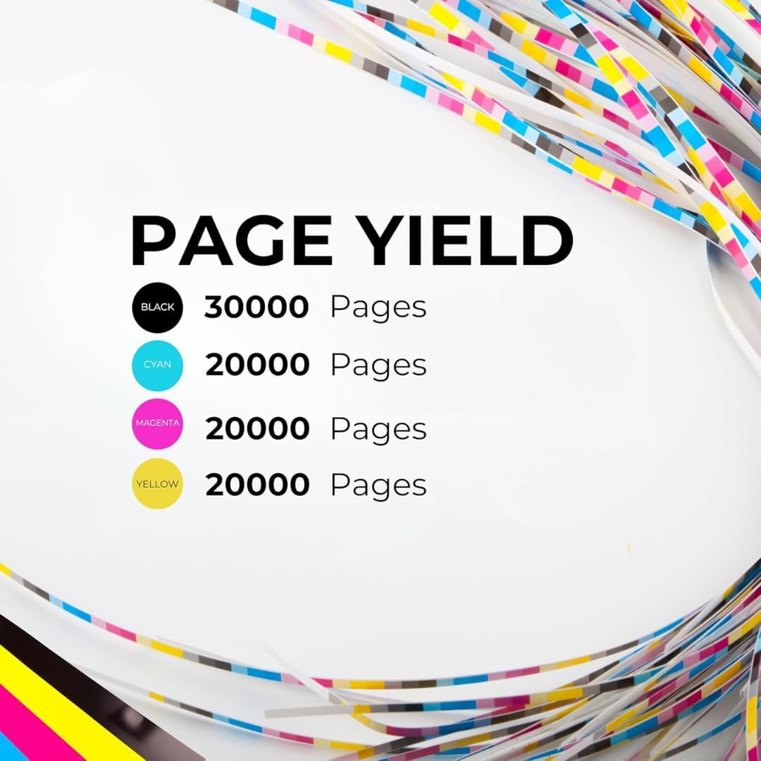 • 𝐏𝐀𝐆𝐄 π˜πˆπ„π‹πƒ: 30,000 Pages per TK8517K Black, 20,000 Pages per TK8517Y Yellow, TK8517C Cyan, TK8517M Magenta Toner cartridges at 5% coverage on letter or A4-sized paper. Please note that yield may vary based on the image area coverage and print mode selected.