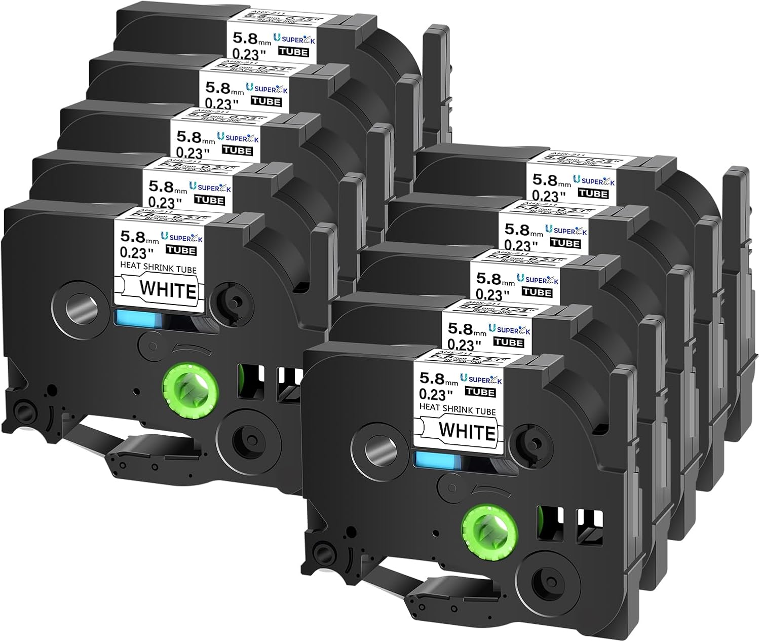 • USUPERINK HSe-211 Heat Shrink Tubes label tapes are perfect to mark cables,fibers and wires and can be used for in diameter 1.7 mm (0.07inch) and 3.2 mm (0.13inch) cables.