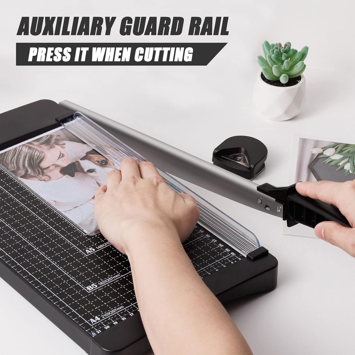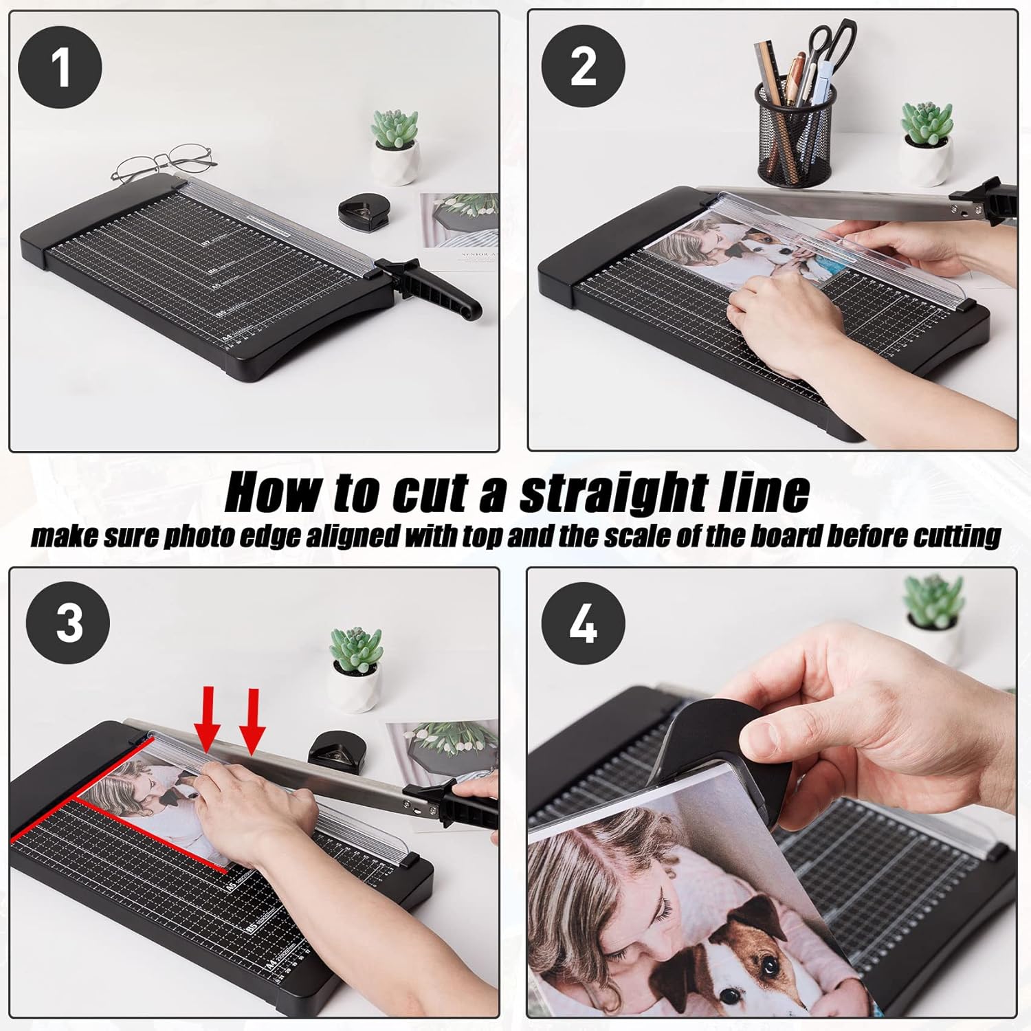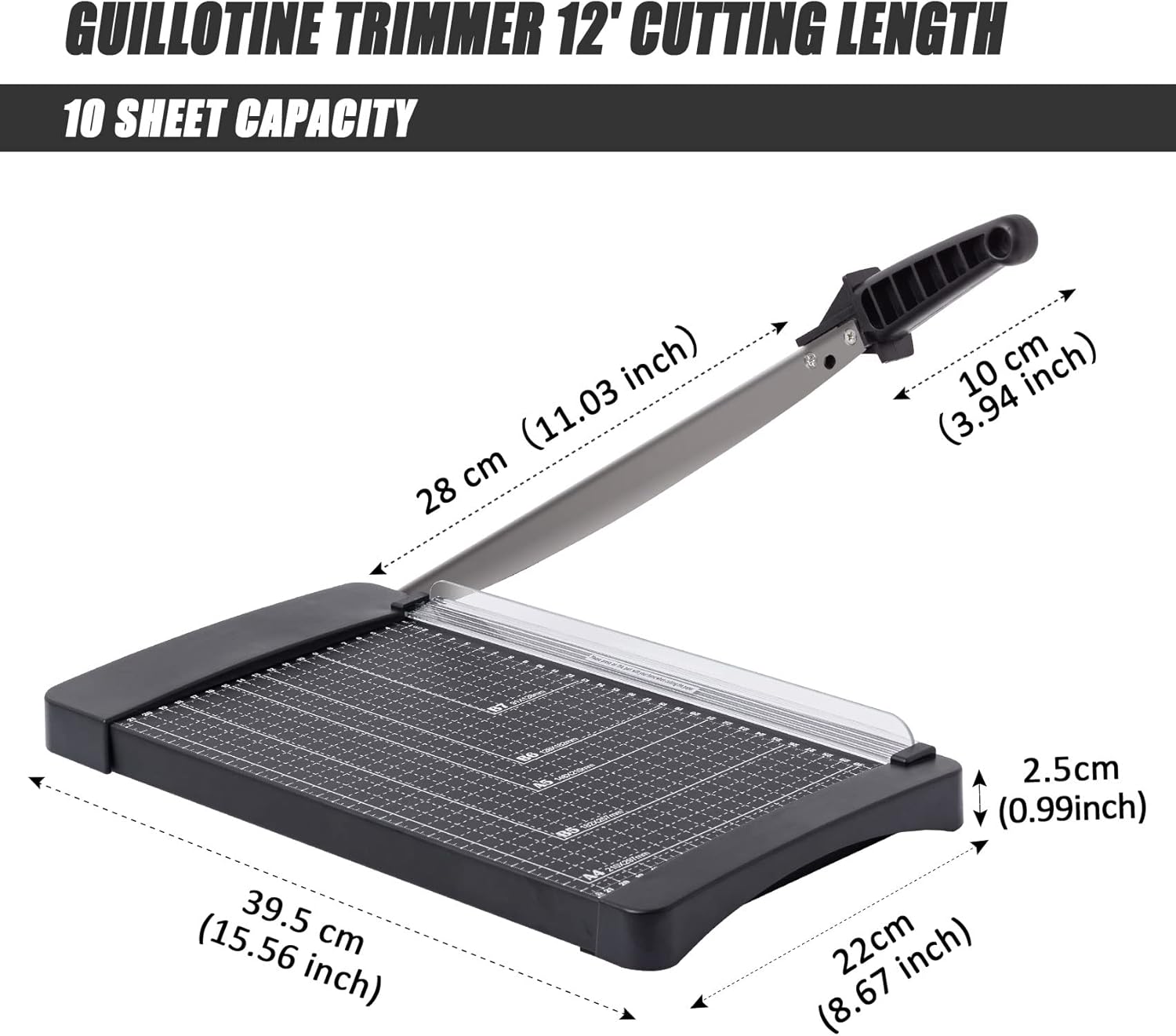 • High-Performance Guillotine Trimmer : Thick and sharp stainless steel blades will stay sharper longer; Accurate measuring scale make cutting work more quick and precise; The paper cutter is suitable for cutting photo cardstock documents