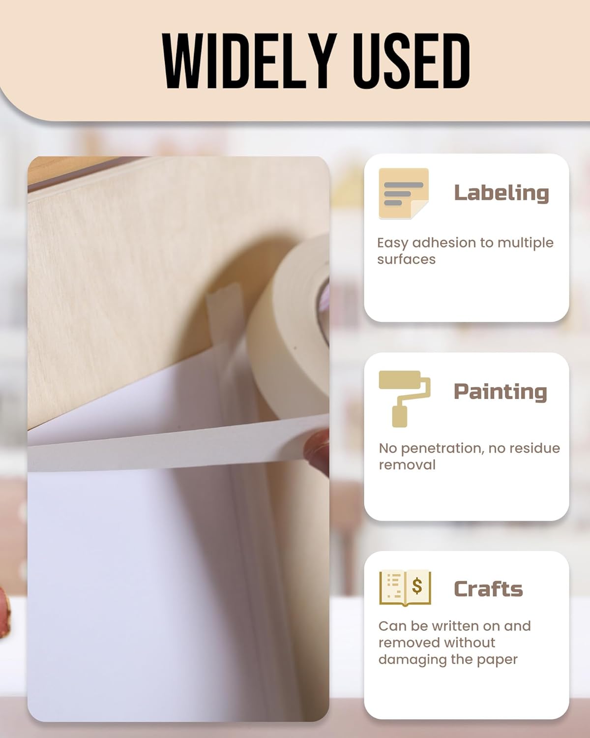 • DURABLE CREPE PAPER BACKING: Made from crepe paper, this tape provides excellent conformability for easy handling; It’s hand-tearable and resistant to slivering, making it versatile for all your masking needs