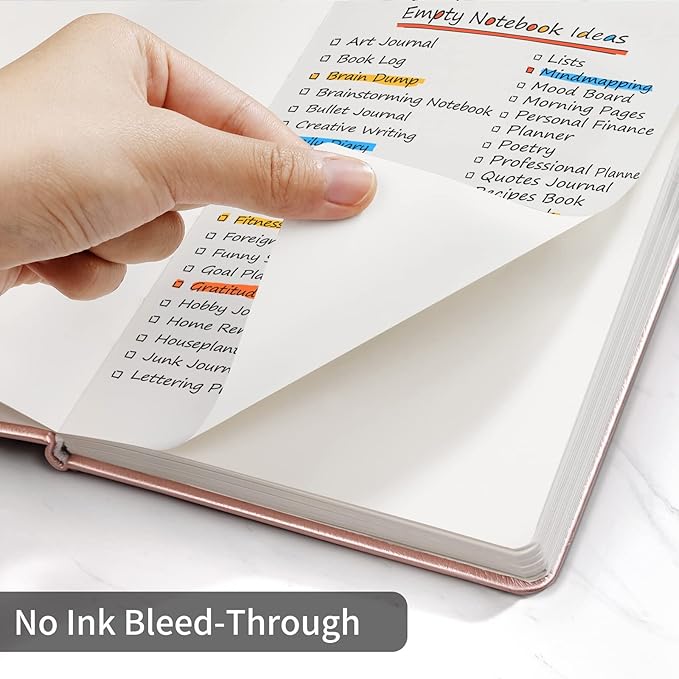 • Multifunctional Cover: The hard cover is made of vegan leather, and designed with a pen loop, an elastic band, two ribbon page markers, an expandable inner pocket.