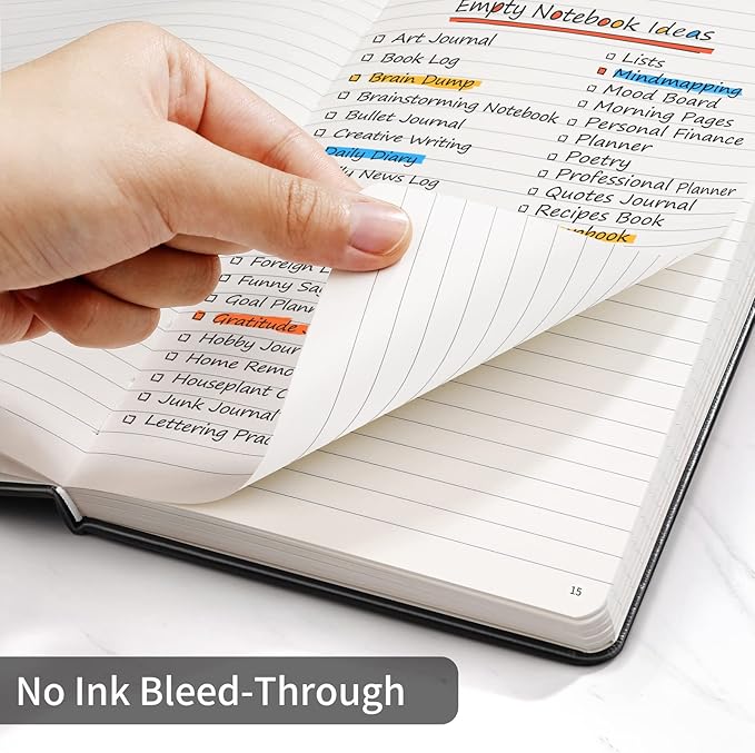 • Multifunctional Cover: The hard cover is made of vegan leather, and designed with a pen loop, an elastic band, two ribbon page markers, an expandable inner pocket.