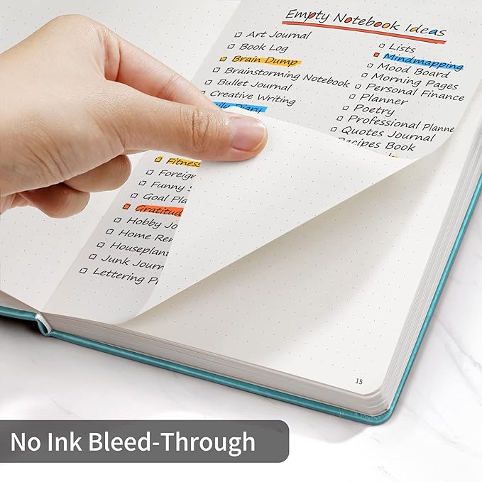• Multifunctional Cover: The hard cover is made of vegan leather, and designed with a pen loop, an elastic band, two ribbon page markers, an expandable inner pocket.