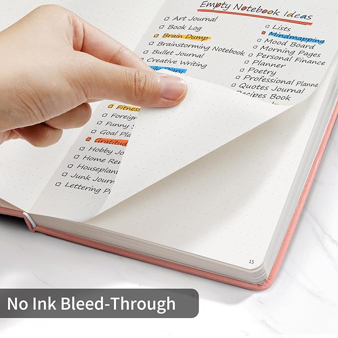 • Multifunctional Cover: The hard cover is made of vegan leather, and designed with a pen loop, an elastic band, two ribbon page markers, an expandable inner pocket.