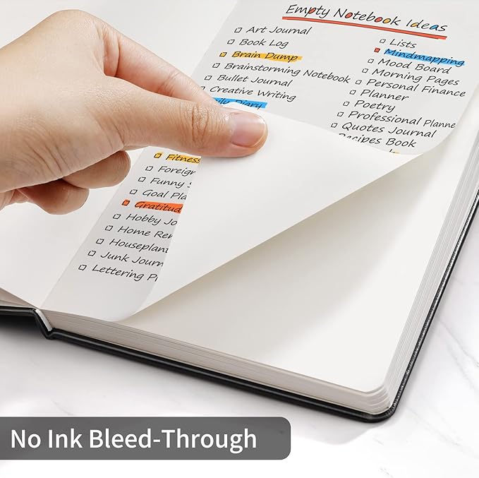 • Multifunctional Cover: The hard cover is made of vegan leather, and designed with a pen loop, an elastic band, two ribbon page markers, an expandable inner pocket.