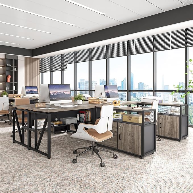 • 【Freestanding 2 piece Home Offices Furniture Set】: 55 inches computer desk and 32 inch filing cabinet, you will love the versatility of having 2 pieces that can be put together for an l-shaped desk to extend your workspace or separate for a different look.