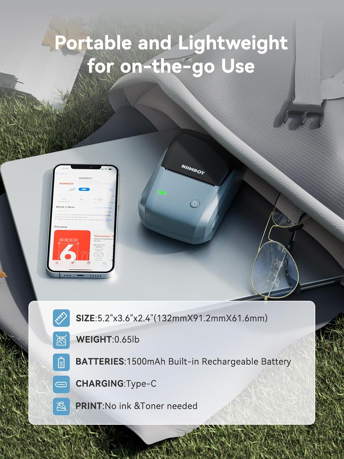 • Portable and Rechargeable: The portable thermal label printer weighs just 293g, making it compact enough to fit in your pocket and easy to carry anywhere. It features a built-in 1500 mAh rechargeable battery, providing up to 100 days of standby time on a single charge.