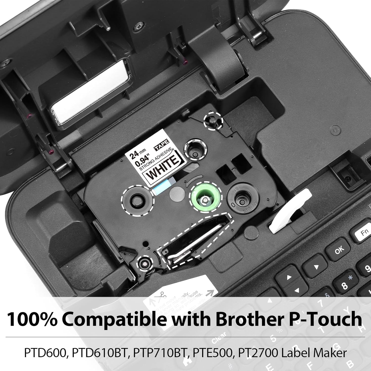 • Compatible with Brother p-touch label maker that using 24mm 0.94" extra-strength adhesive laminated tape, such as PTD600 PTD610BT PTP750W PTE500 PTE550W PTE800W PTH500LI PTP700 PTP900W PTP950W PT330 PT350 PT520 PT530 PT540 PT550 PT580C PT1400 PT1500PC PT1600 PT1650 PT2200 PT2210 PT2300 PT2310 PT2400 PT2410 PT2430PC PT2500PC PT2600 PT2610 PT2700 PT2710 PT2730 PT2730VP PT3600 PT7500 PT7600 PT9200DX PT9200PC PT9400 PT9500PC PT9600 PT9700PC PT9800PCN,etc.