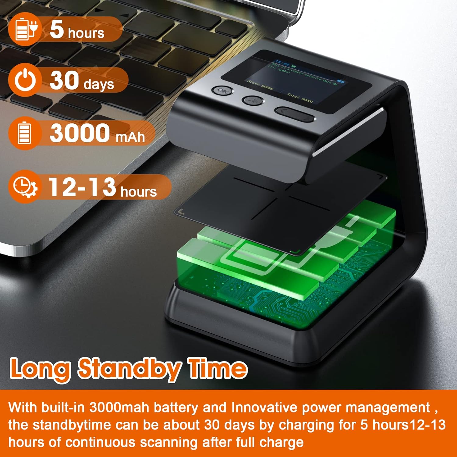 • 3000mAh battery : Large built-in 3000mAh battery , Superior battery power management delivers the largest number of scans per battery charge to support scan intensive applications . for the ticket window at a train station airport and so on.