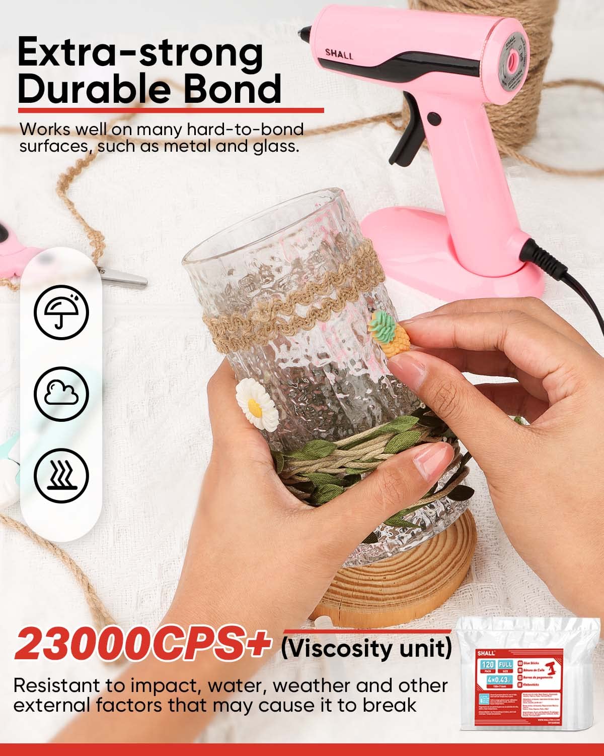 • Strong Bond & Excellent Flexibility : It’s constructed using a flexible EVA hot melt glue that creates a strong bond (2300 CPS+), fast curing speed and toughness; Works well on many hard-to-bond surface from metal to plastic to paper; Better performance in resisting impact, water, weather and other external factors that may cause it to break