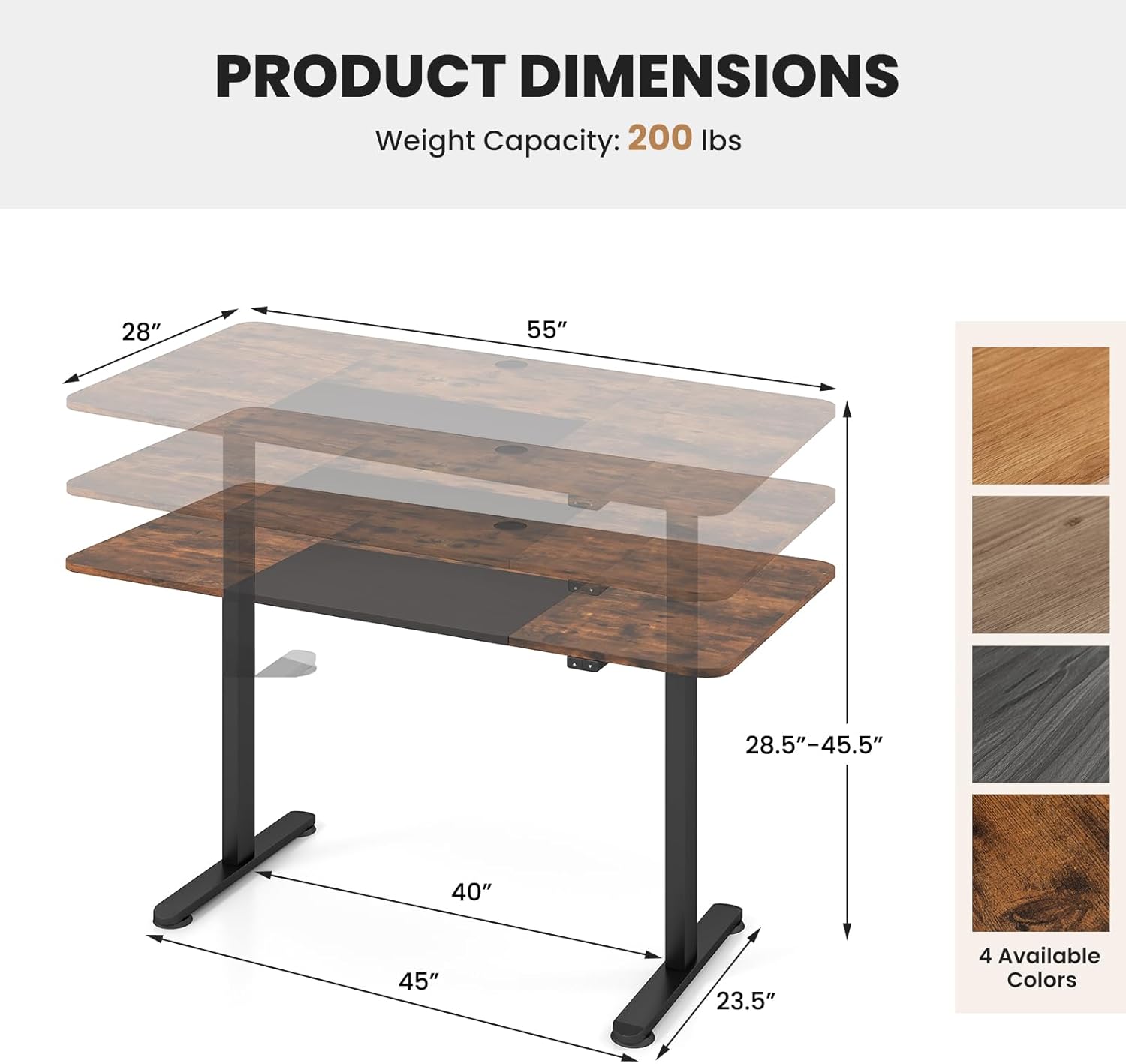 • Make Standing Work Possible: Tired of sitting for long hours? Take a look at this height-adjustable desk. The height of this sit-stand desk can be adjusted between 28.5"-45.5". Just press the control button next to the desk and you can adjust the height of the desk at any time for sitting or standing work.