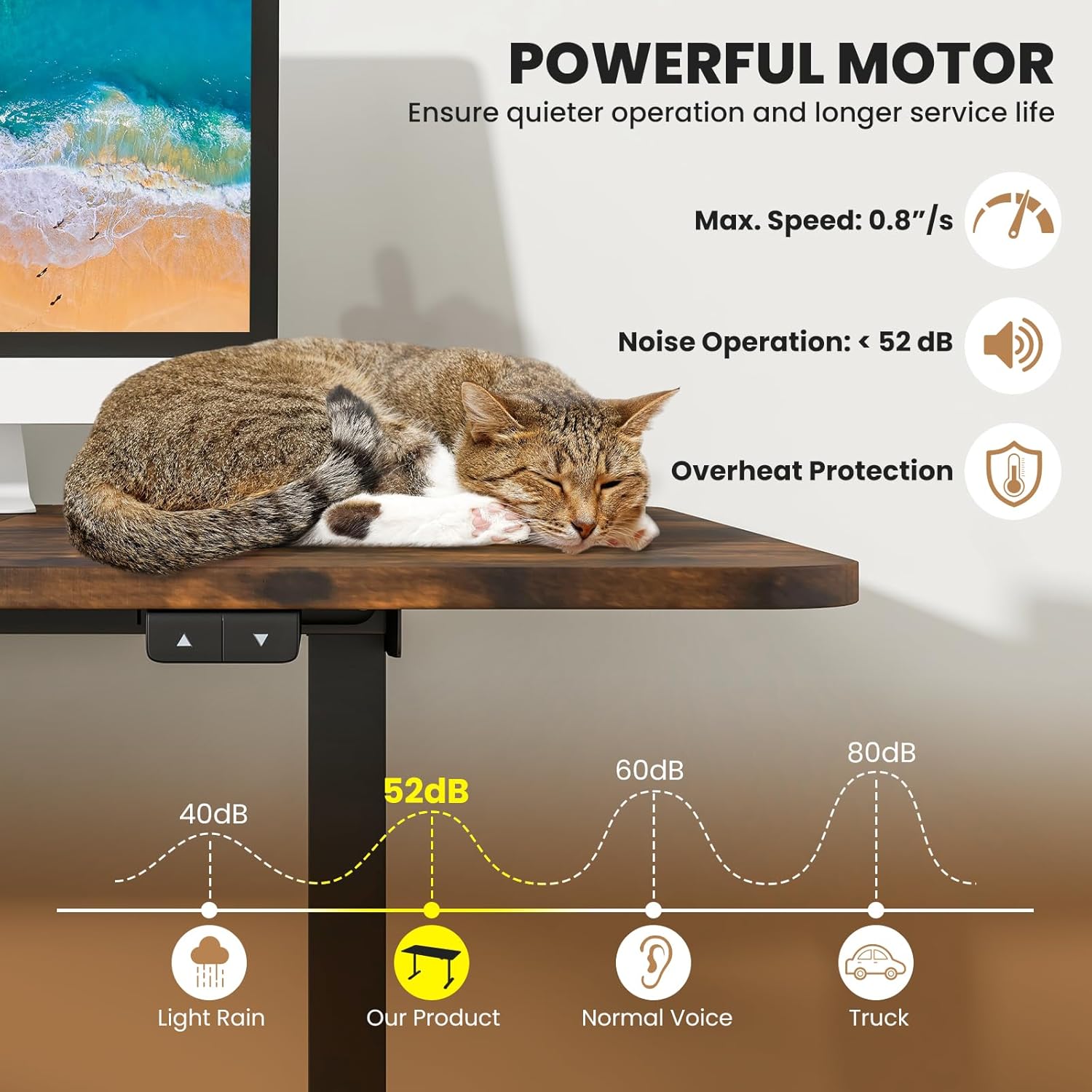 • High Quality Mechanics: This electric adjustable standing desk features an advanced motor that ensures a longer service life. The strong double beams give this liftable desk a more stable structure. In addition, this high-quality mechanical structure can withstand up to 200 pounds even during lifting.
