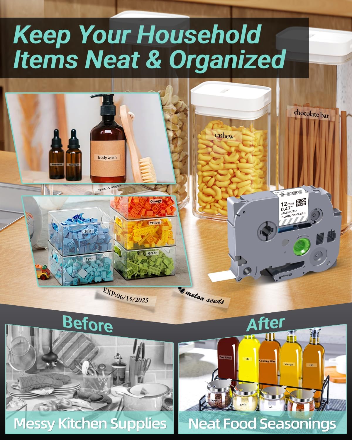 • Label maker tape clear tze131, resist to Water / Fading / Temperature / Abrasion / Grime / Grease / Chemical, replace p touch label tape clear tze-131.