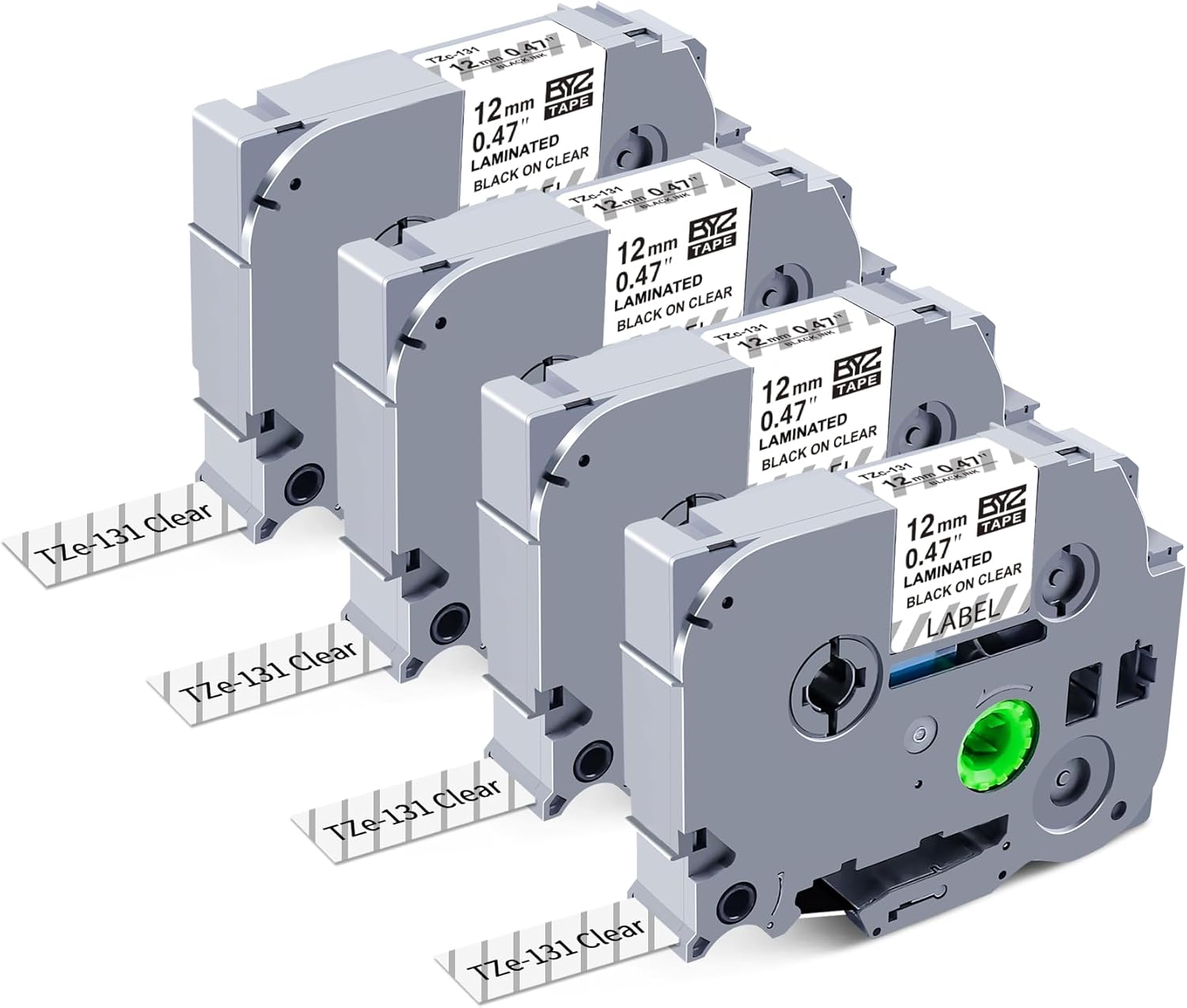 • Package: 4-Pack tze-131 12mm 0.47 laminated black on clear tape Replacement for Brother P Touch TZe-131 TZ-131, 1/2 Inch x 26.2 feet (12mm x 8m).