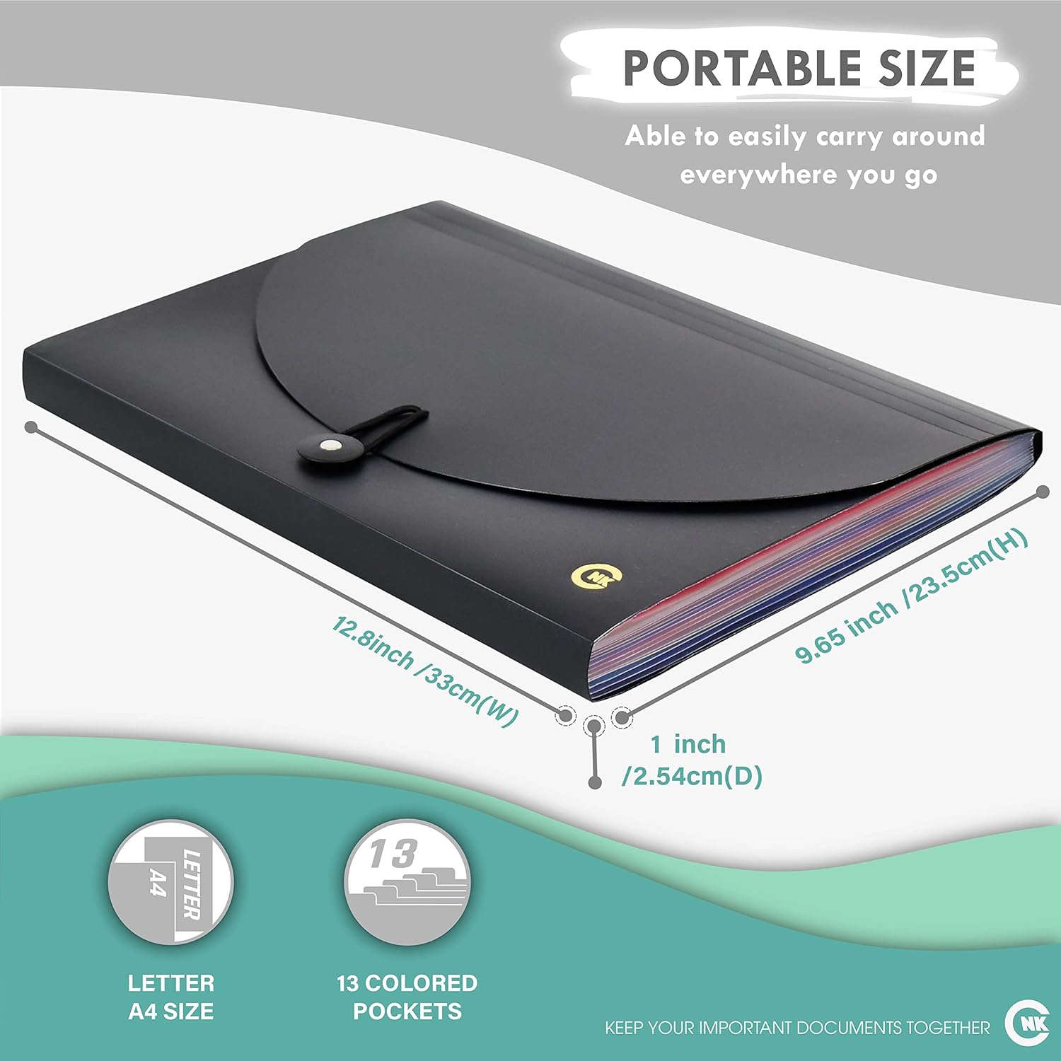 CNK File Folders Organizer with 13 Pockets Accordion Expanding Folder For Documents Receipt Document Paper Pocket Filing Products Accordian Important expandable holder files alphabetical Labels Letter