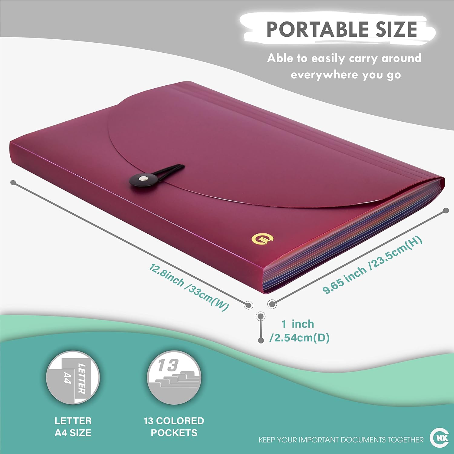 CNK File Folders Organizer with 13 Pockets Accordion Expanding Folder For Documents Receipt Document Paper Pocket Filing Products Accordian Important expandable holder files alphabetical Labels Letter