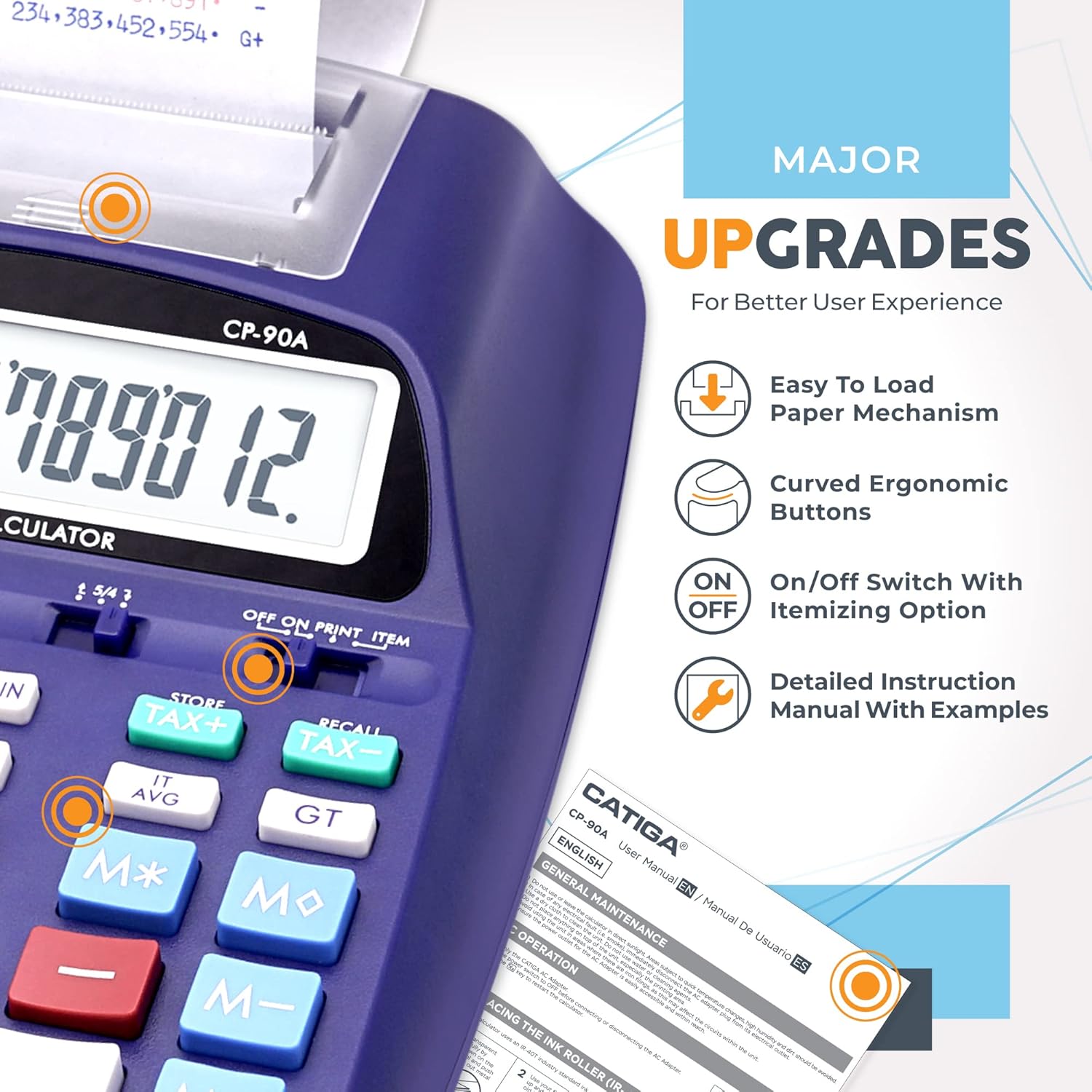 CATIGA New & Upgraded 2025 Printing Calculator Adding Machine 10 Key, Desktop Home Office Calculator with Paper Roll Print Out, Accounting Business Finance