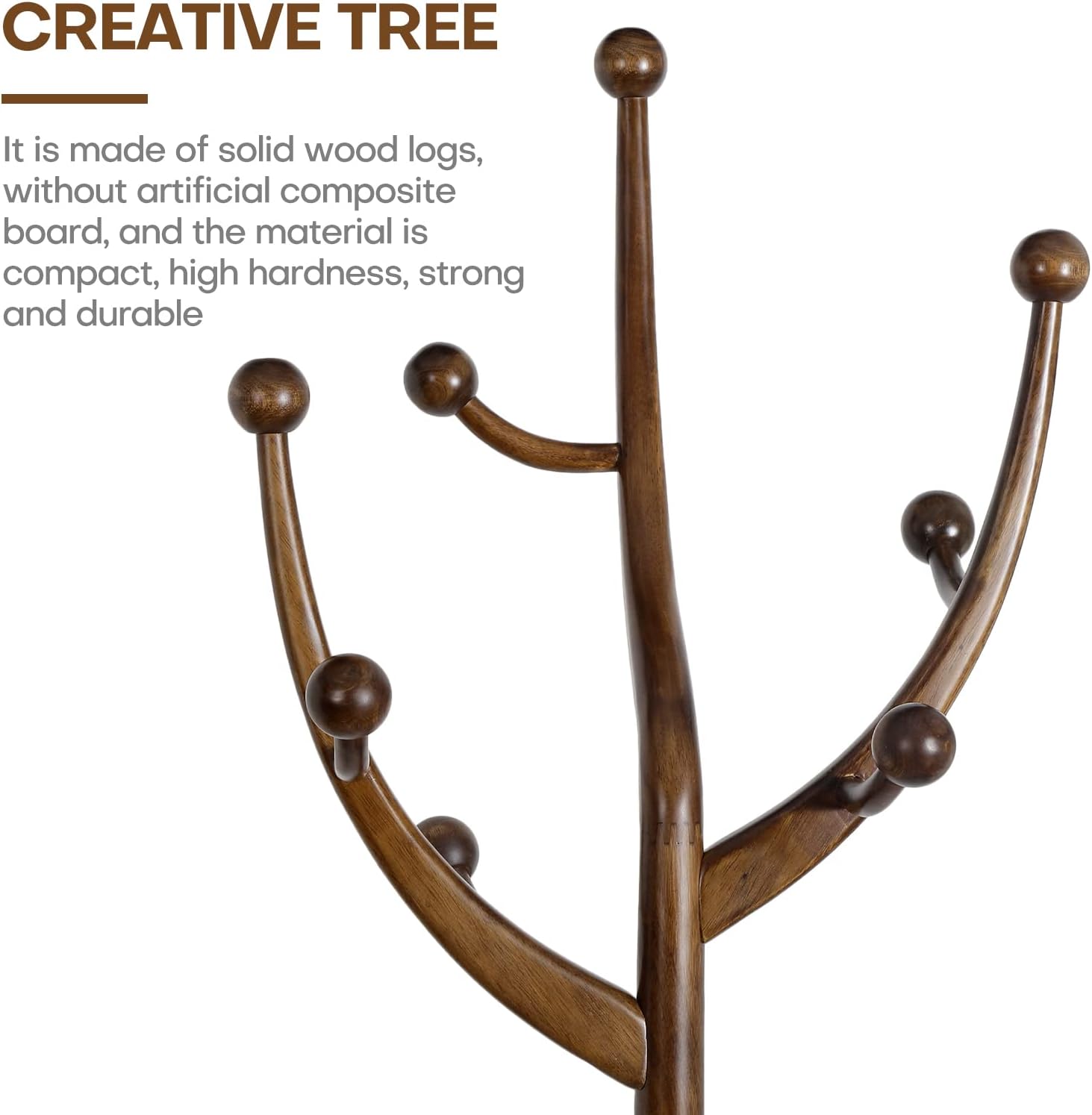 • 【Premium Material】: This coat rack freestanding is made from high-quality rubber wood logs, and does not contain artificial synthetic boards. The wood material exhibits an attractive grain and a walnut brown finish that makes this coat rack a lovely addition to any home