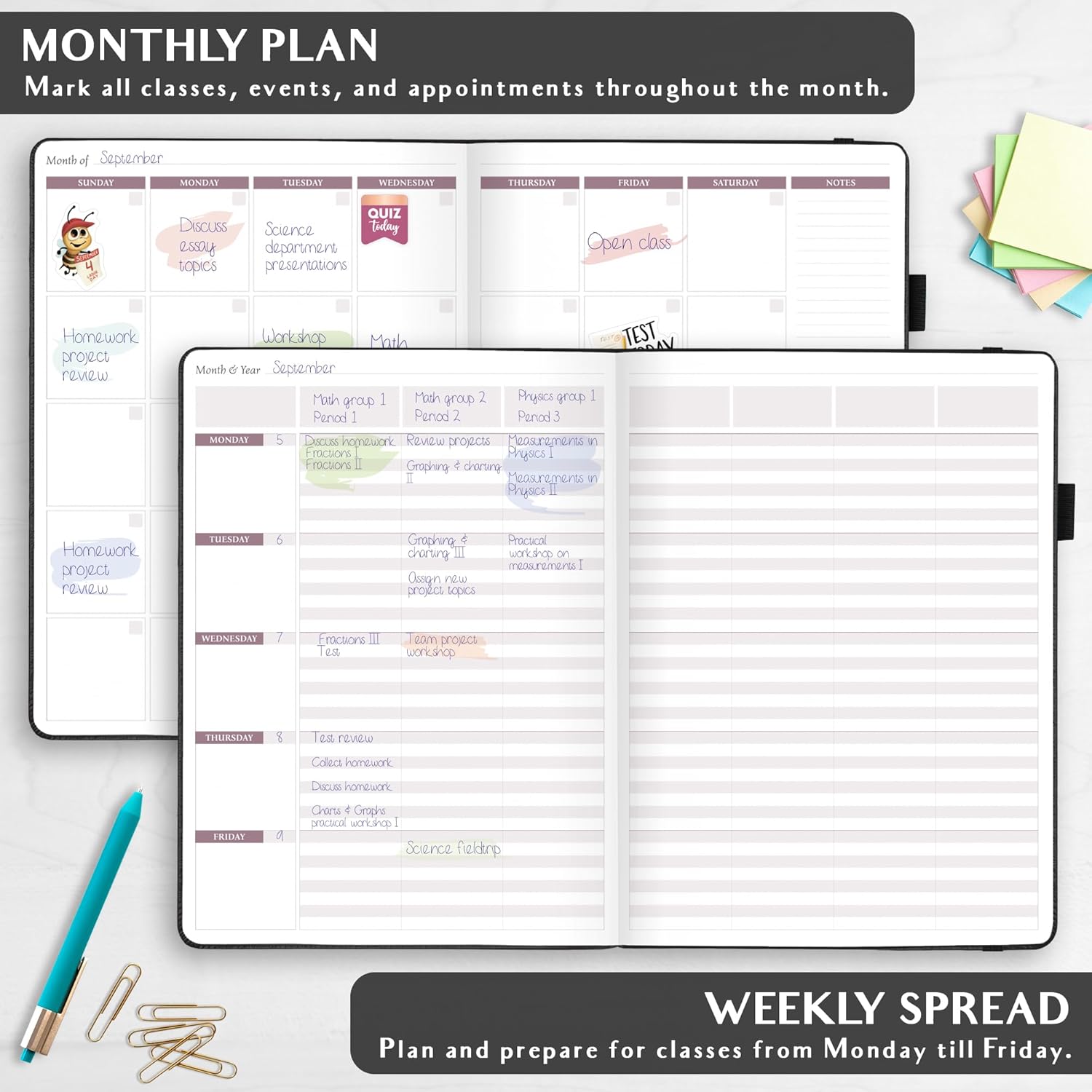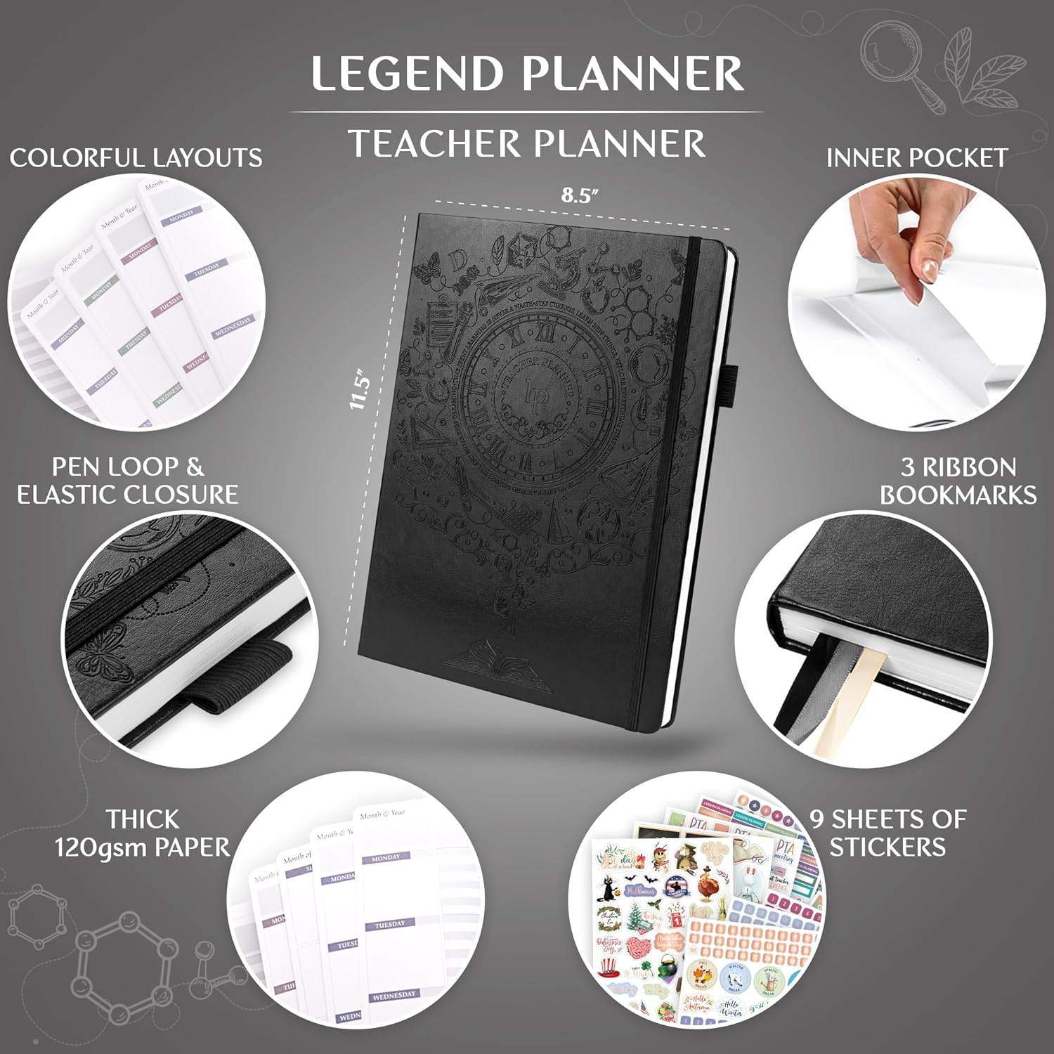 • ALL THE TOOLS YOU NEED TO PLAN THE SCHOOL YEAR – Legend Undated Teacher Planner features many effective tools to plan the school year, including 12 monthly and 60 weekly plans, class records, communication log, classroom expense tracker, etc.