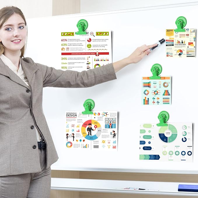 • 【Strong Magnetism】Magnet clips heavy duty can hold over 25 sheets of A4 paper on a metal surface without sliding.