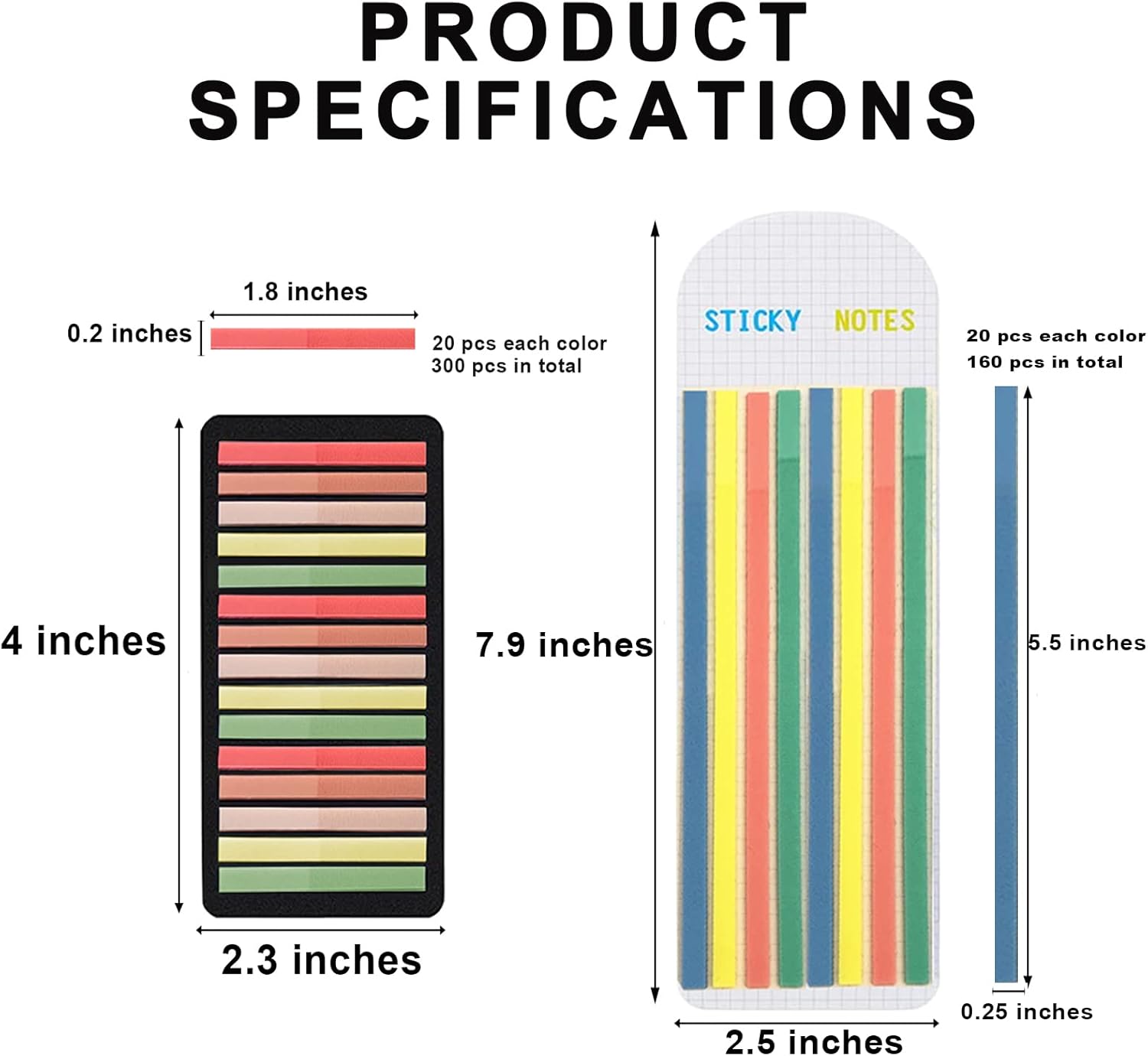 • 【2300Pcs Highlighter Tape】:Potanro strips sticky tabs set have 2300 pieces sticky notes tabs in total, these tabs can help you to highlight and mark pages, instead of marking with highlighters which make permanent marks on book and damage your book.