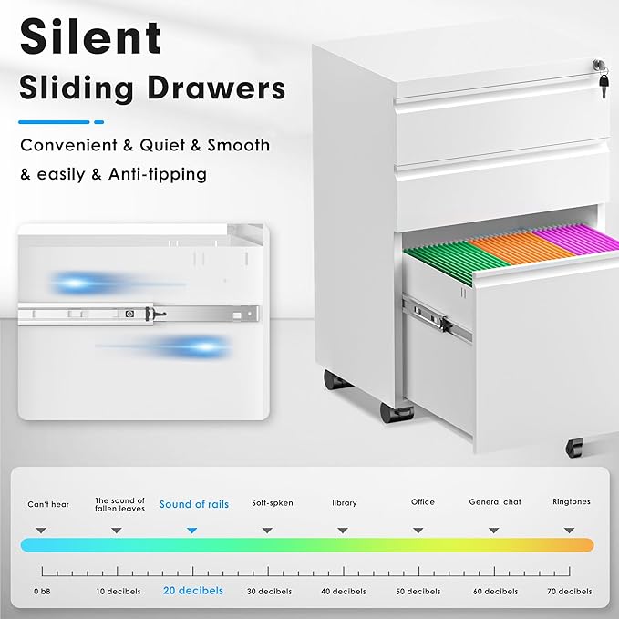 • ❤Lockable Mobile File Cabinet: 3 Drawer filing cabinet The filing cabinet comes with a manual at the factory, and the assembly process is as simple as splicing building blocks, and it can also exercise hands-on ability.1 lock secures all the three drawers.Tips: 2 keys should be kept separately in case of losing.