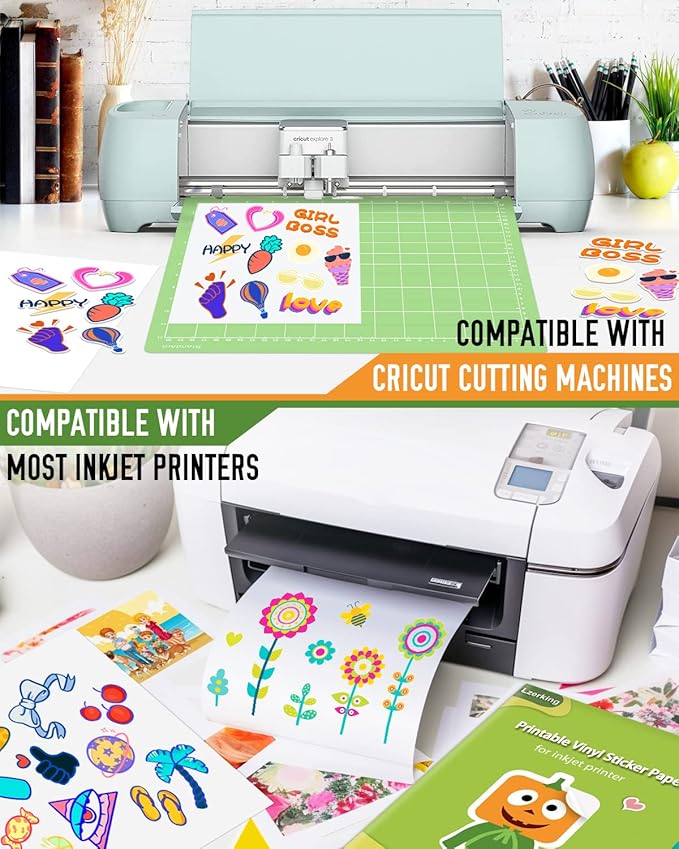• 【COMPATIBLE WITH INKJET PRINTER AND CUTTERS】Inkjet Printable Vinyl is guaranteed to work perfectly with Inkjet Printer. Printable vinyl is compatible with Cricut and other cutting machines. The ink can Dry Quickly within a few minutes. Perfect for crafts and projects and the ink doesn’t bleed