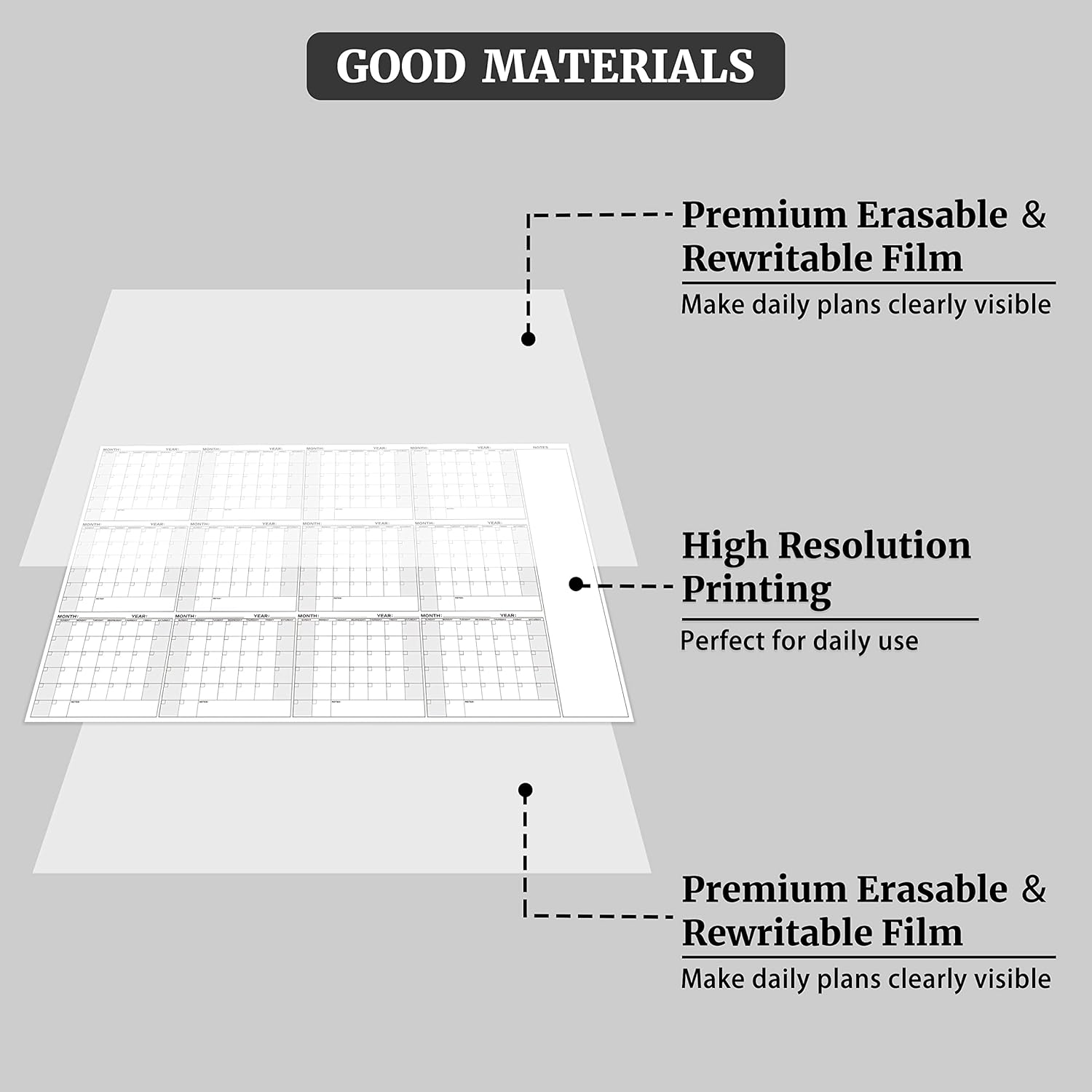• Large Dry Erase Calendar for Wall – Yearly Wall Calendar Dry Erase, 37" x 57.9", 12-Month Undated Blank Calendar Planner, Reusable Laminated Task Organizer, Great for Office, Classroom, Home