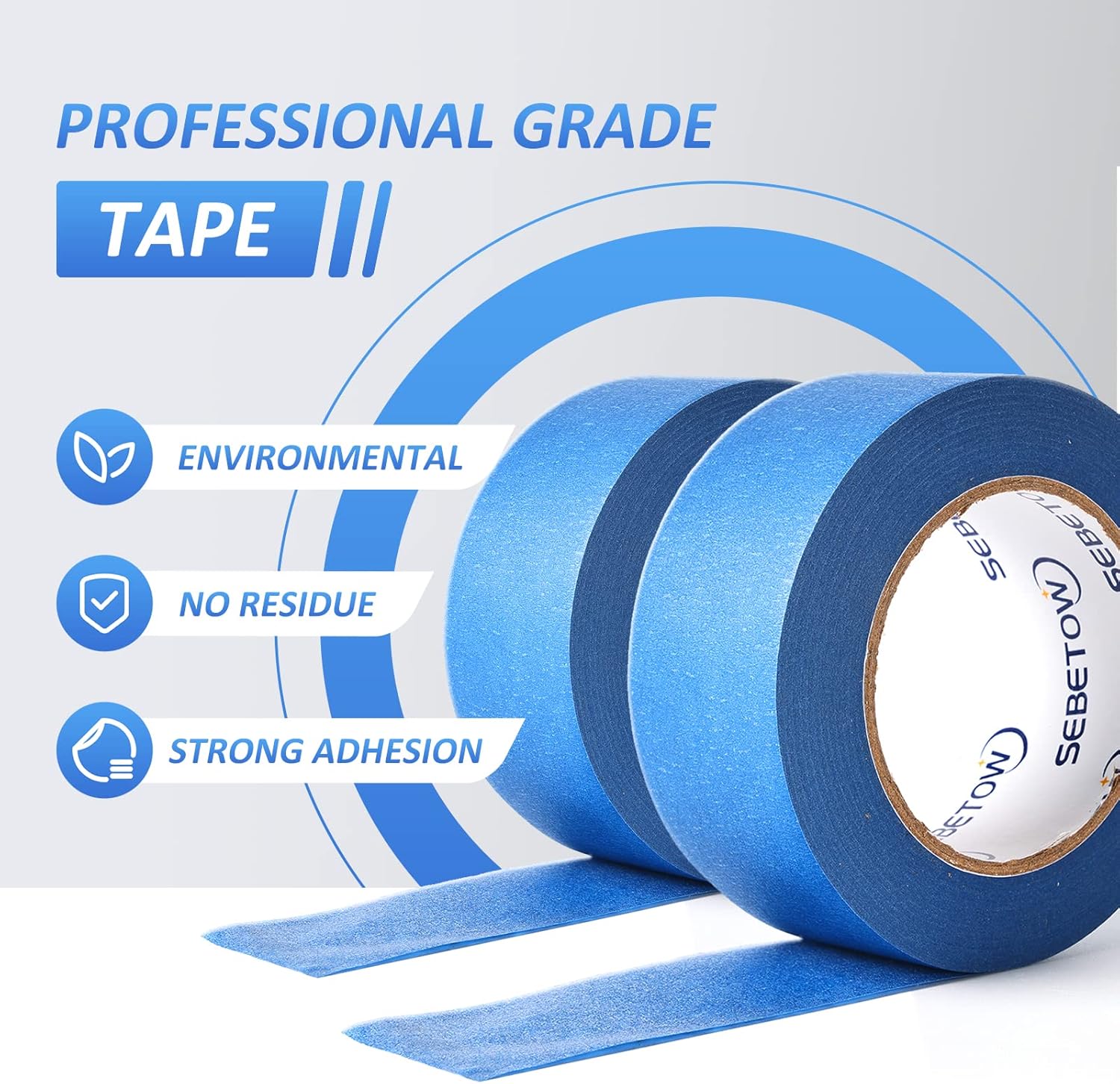 • Professional grade tape: Our blue 2-inch painter's tape will create a perfect edge for you. Sharp lines are kept nice and straight and fit perfectly to the surface or wall. It will not bleed through or deform. Even if you are a novice with no painting experience, you can also finish it perfectly. It is great for any kind of painting, edging, masking, and trimming jobs