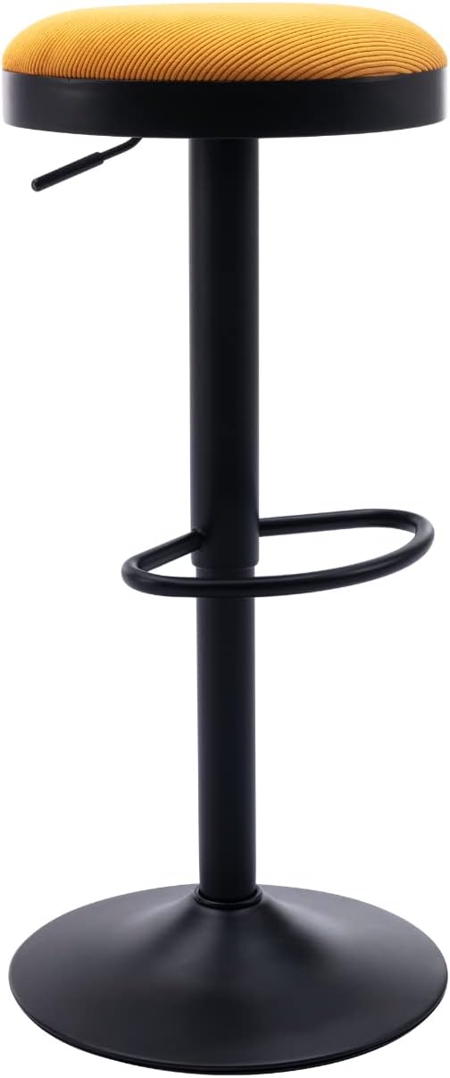 Round Swivel Counter Height Bar Stools Set of 1 Modern Adjustable Barstools Backless Corduroy Bar Chairs Industrial Island Chairs with Metal Base/Footrest for Kitchen Island/Pub, Yellow