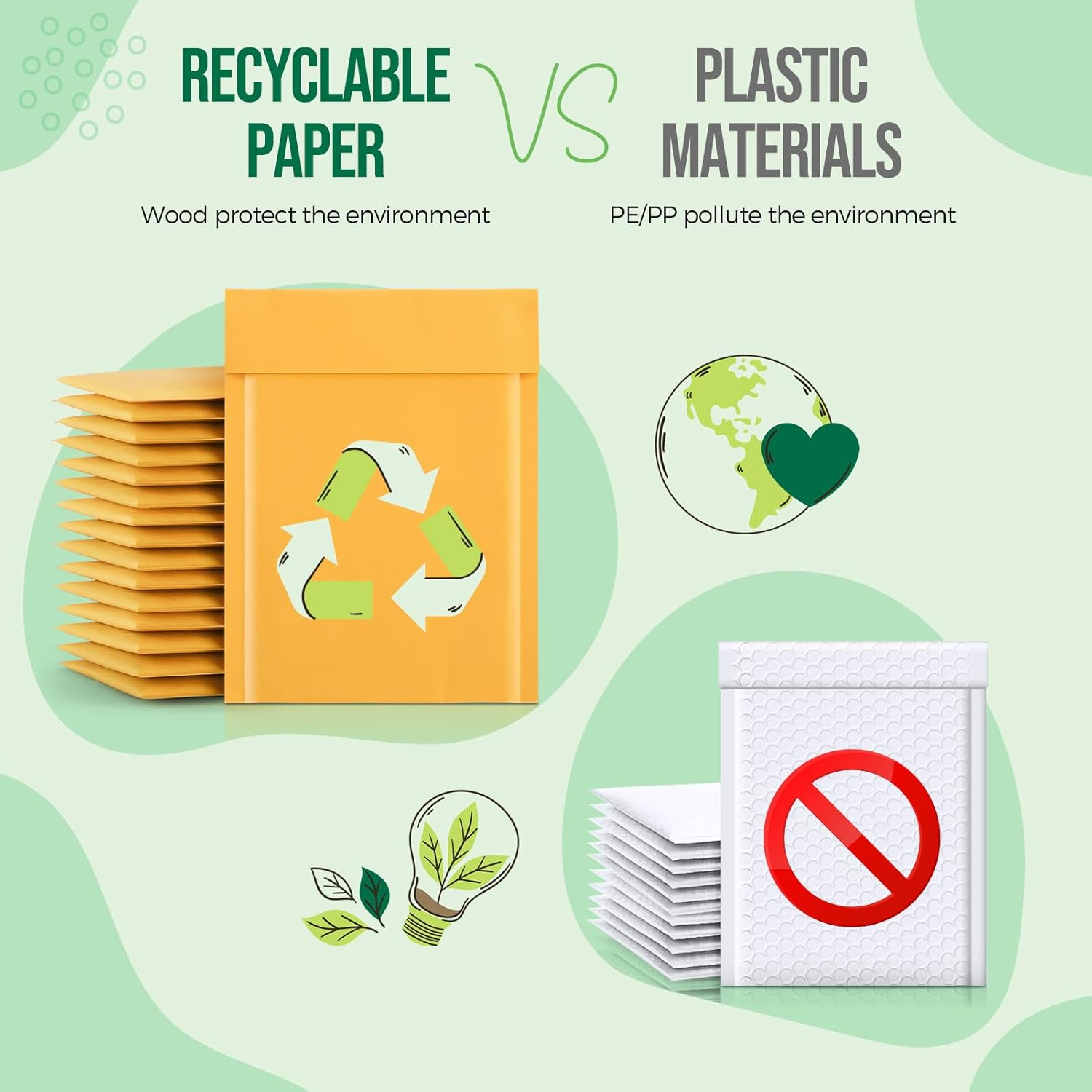 • 【Recyclable Material Bubble Mailers】The outer layer of kraft bubble mailers are made of paper, recyclable, FSC compliant, you don't have to be an environmental scientist to make sustainable choices. And the inner layer of kraft paper bags are poly bubble wrap, which can provide cushioning for the contents of the package.