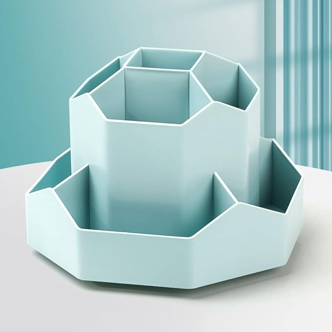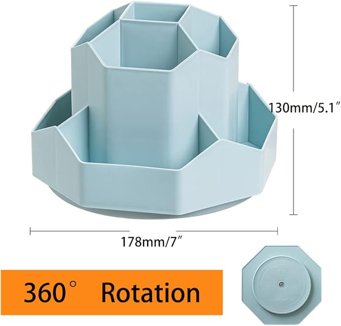 • -ROTATING DESKTOP ORGANIZER - Simply spin this pencil holder to store or take out your things, this storage organizer allows you to keep all of your things within reach. Our office plastic desk organizer with divided 9 compartments that will organize pens, pencils, , ruler, clips, scissors and other office accessories separately.
