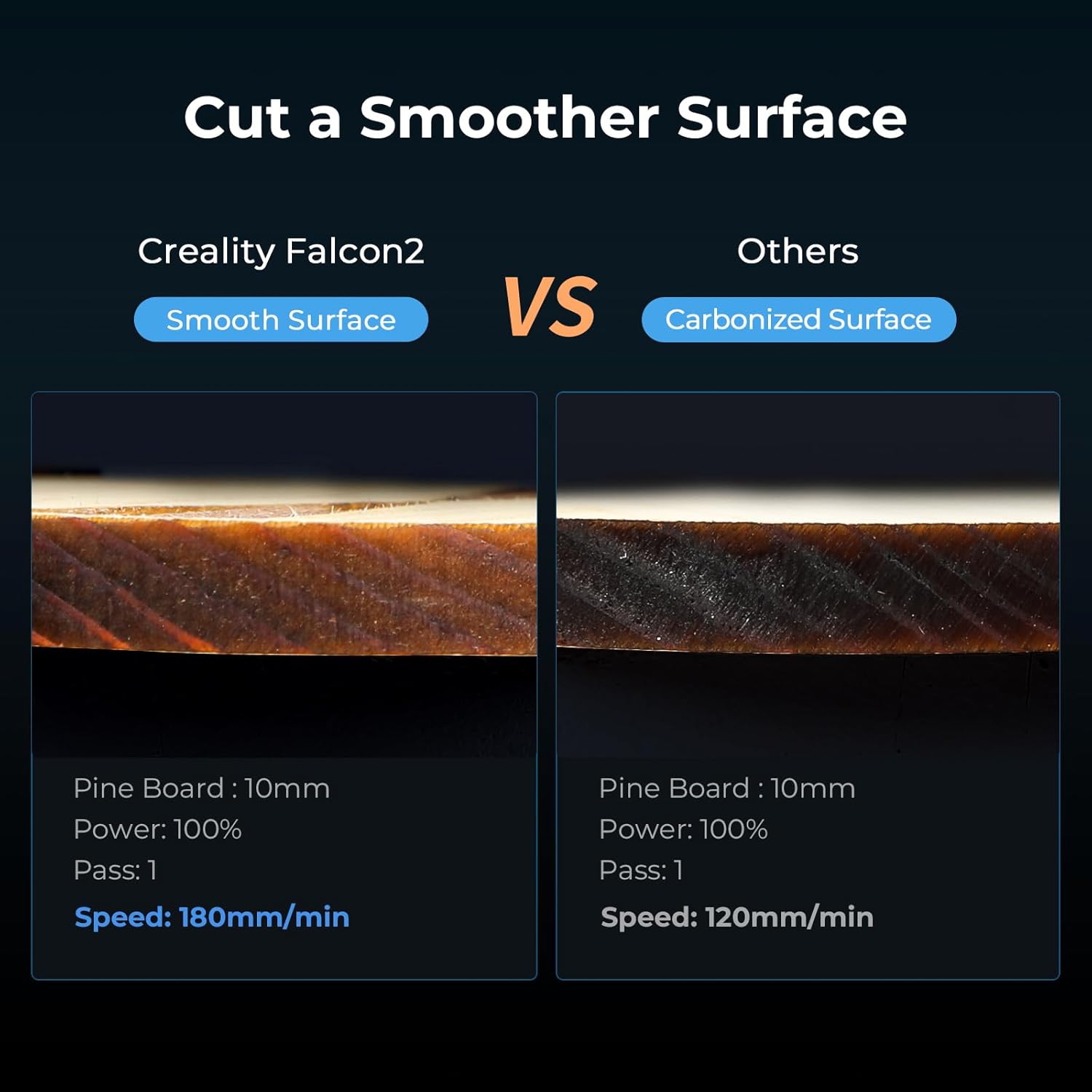 • Engraving Speed up to 25000mm/min, High Accuracy - Compared with the Creality 10W engraving machine, the cutting speed of the Creality falcon 2 laser engraver is increased by 200%, and the engraving speed is increased by 100%. Out of the box, you can typically assemble a Creality falcon 2 laser engraver in 10-20 minutes