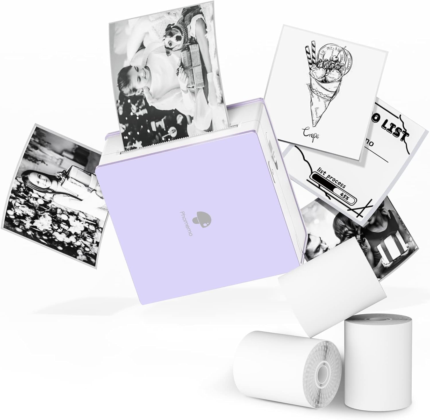 Phomemo Sticker Printer- Mini Thermal Sticker Printer Machine, Small Pocket Label Maker Instant Print for DIY Creation, Study Notes, Photos, Portable Inkless Photo Maker for Kids/Students, Purple