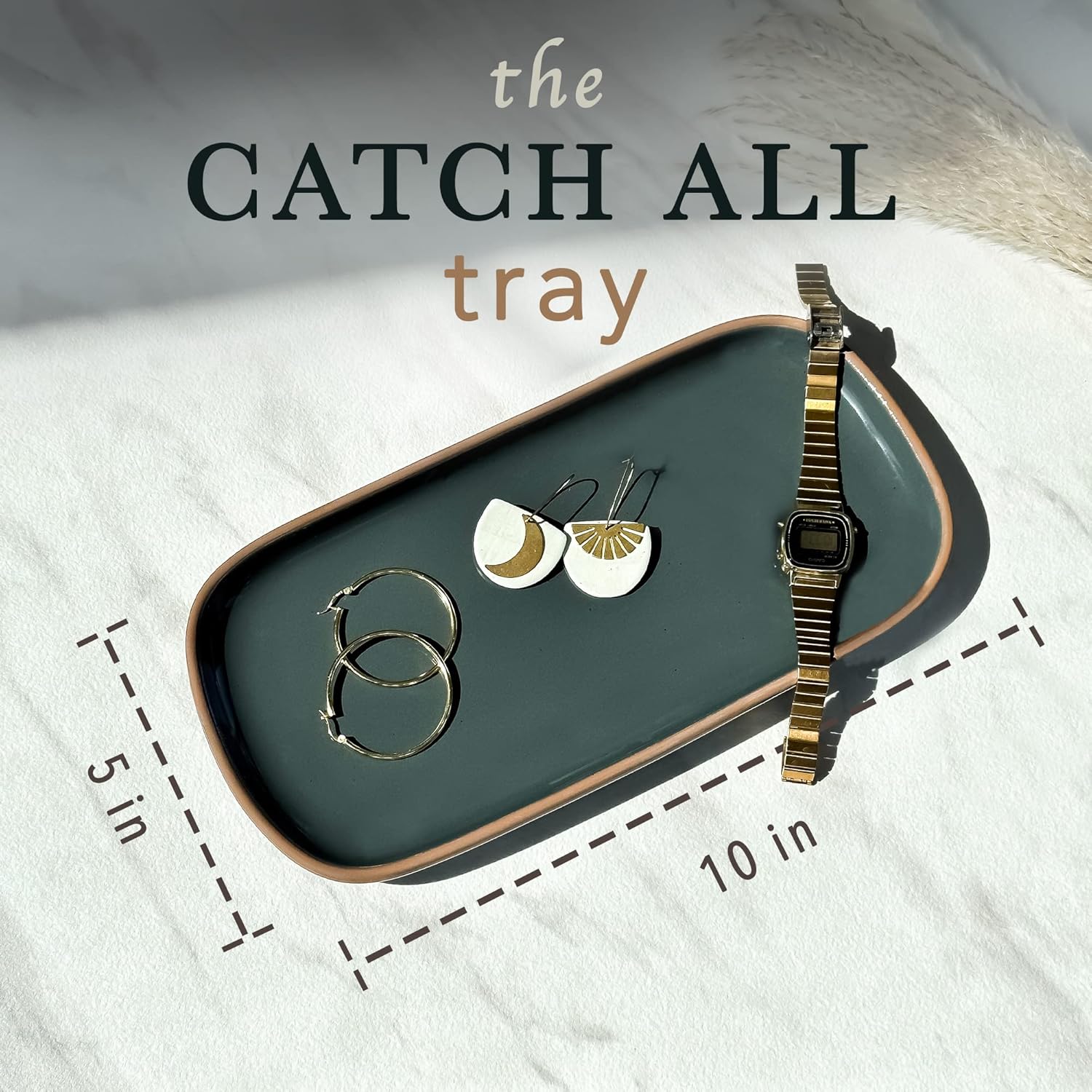 • VERSATILE USES: We all love a multi-functional object. Trays are all the rage right now and with good reason. Storing things on a tray gives a minimal and organized aesthetic and can be used for an endless amount of things. Your stationary, soap dispensers, brushes, candles, cosmetics, jewelry etc all deserve a beautiful home. The glaze is also food grade and work great for serving cheese, sushi, mini cakes, etc.