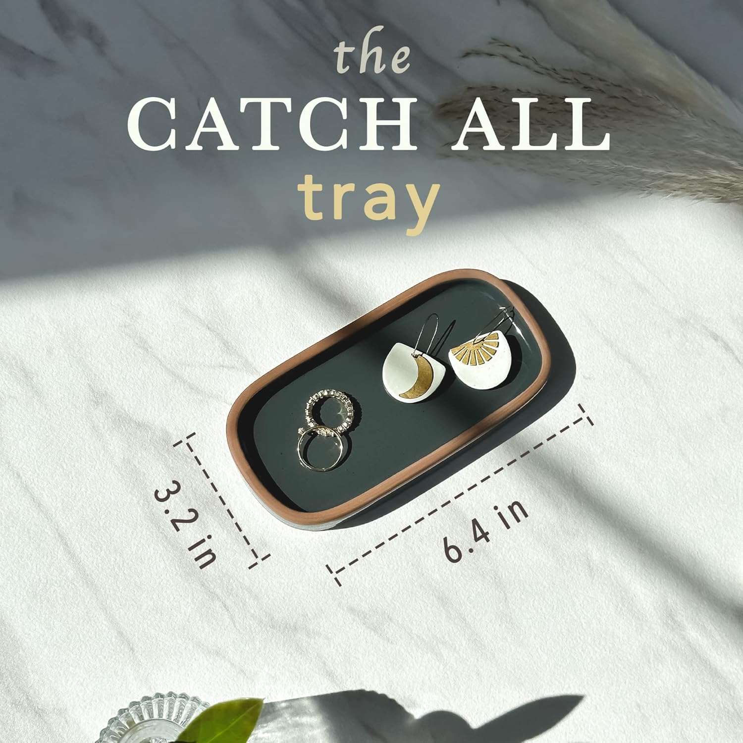 • VERSATILE USES: We all love a multi-functional object. Trays are all the rage right now and with good reason. Storing things on a tray gives a minimal and organized aesthetic and can be used for an endless amount of things. Your stationary, soap dispensers, brushes, candles, cosmetics, jewelry etc all deserve a beautiful home. The glaze is also food grade and work great for serving cheese, sushi, mini cakes, etc.