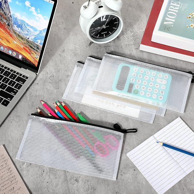 • Proper Size: each mesh bag measures approx. 9.4 x 4.5 inches/ 24 x 11.5 cm, ideal for storing stationary and other small items, also can be applied for home daily storage, such as jewelry, make up brush, easy to carry