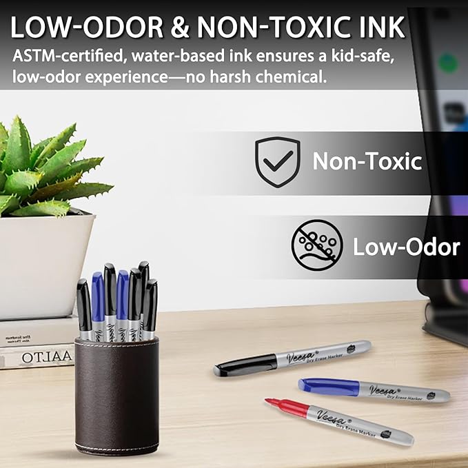• Fine-tip Marker: Allows for precise writing and features a smooth and consistent writing experience, making it easy to write on whiteboards and most non-porous surfaces.