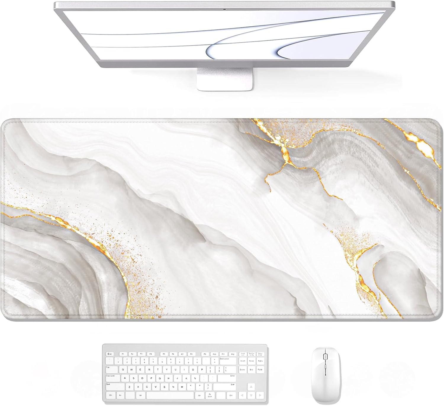 Auhoahsil Large Mouse Pad, XXL Gaming Mousepad, Desk Mat for Desktop, Thick Rubber, Big & Long Size, Stitched Edges, Full Desk Pad for Laptop & Computer, Extended 35.4 x 15.7 in, Gold Gray Marble